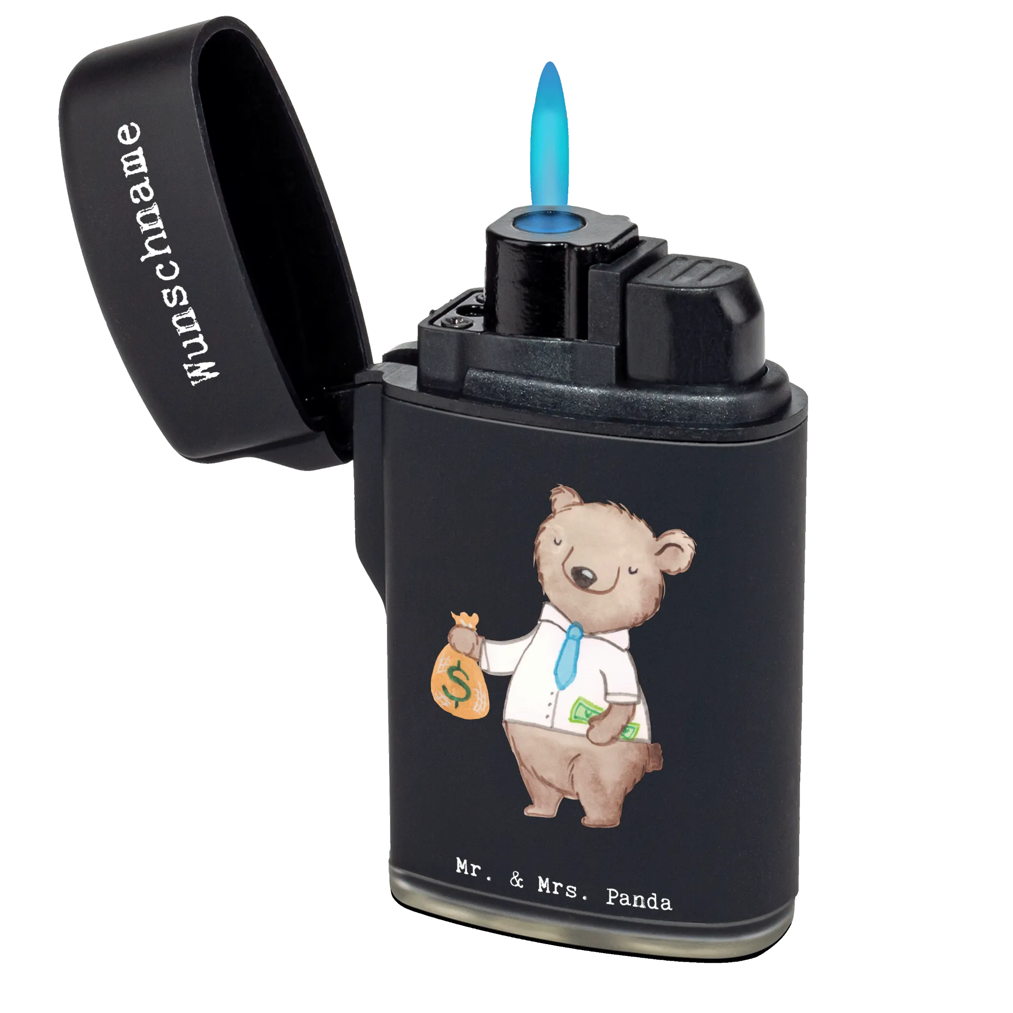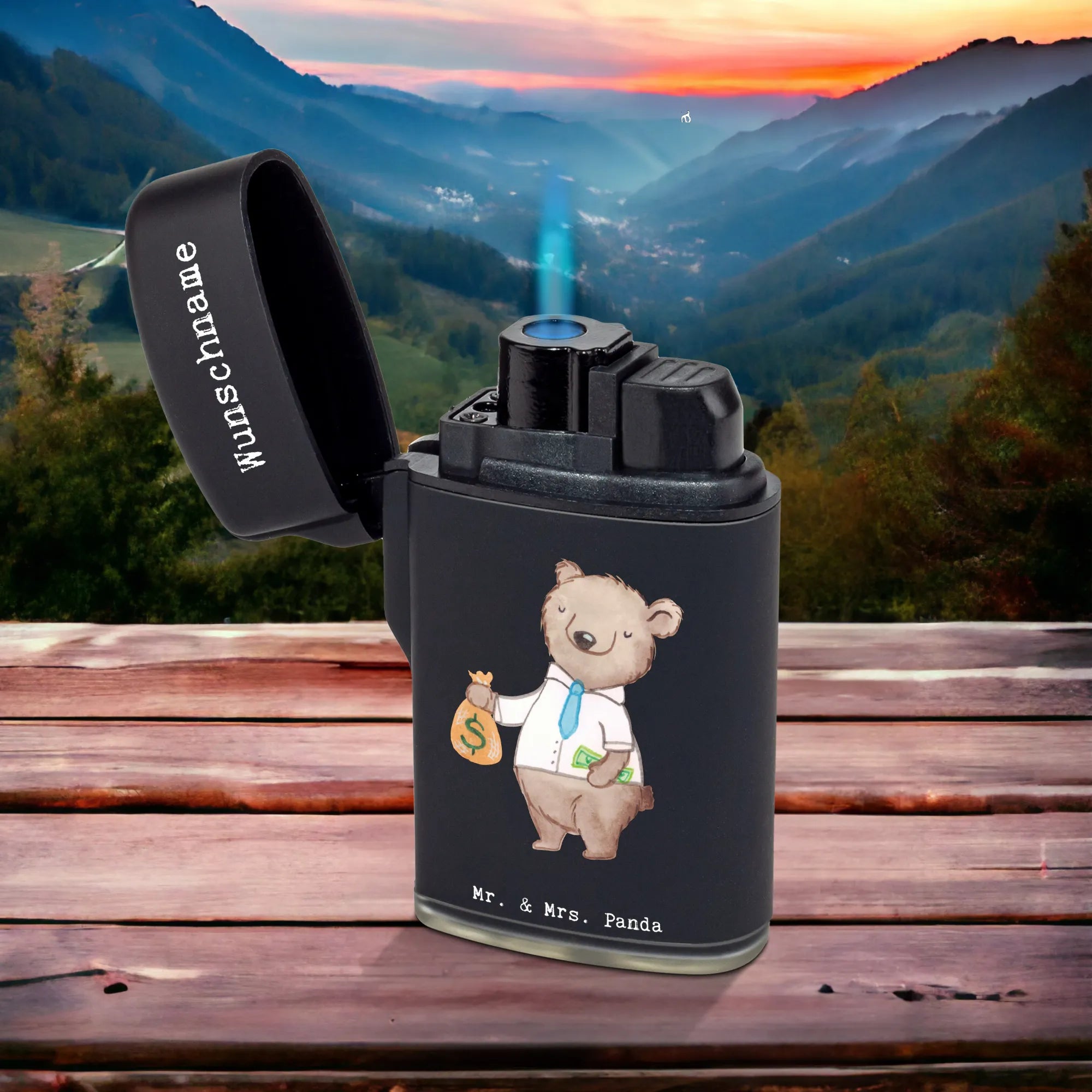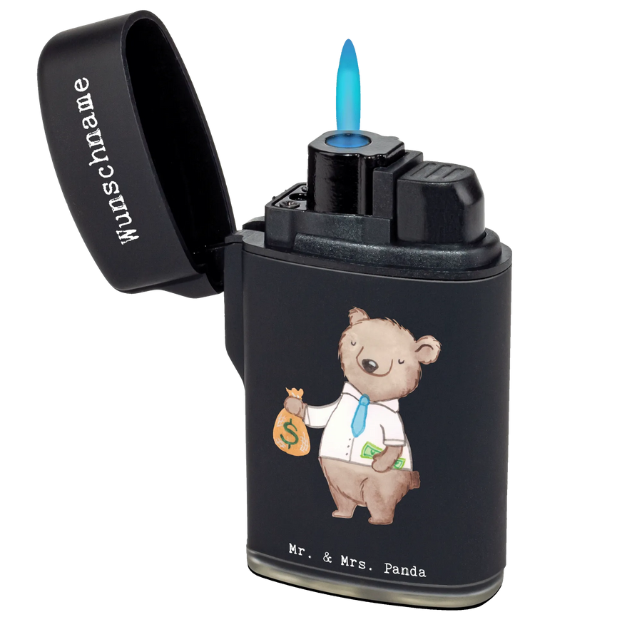 Das personalisierte Feuerzeug "Bänker mit Herz" von Mr. & Mrs. Panda ist das perfekte Geschenk für alle Bänker und Bankangestellten, die ihren Beruf mit Leidenschaft ausüben. Mit einem süßen Design, das einen kleinen Bären zeigt, der ein Sack voll Geld in der Hand hält, und dem witzigen Slogan "Du bist nur ein halber Mensch, wenn du kein Bänker bist", ist es nicht nur ein praktischer Alltagsgegenstand, sondern auch ein liebevolles Erinnerungsstück für jeden Bänker!