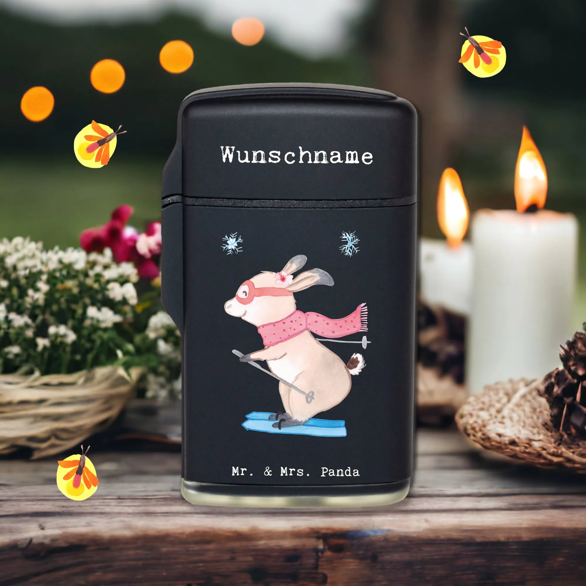 Personalisiertes Feuerzeug Hase Skifahren – Mr. & Mrs. Panda
