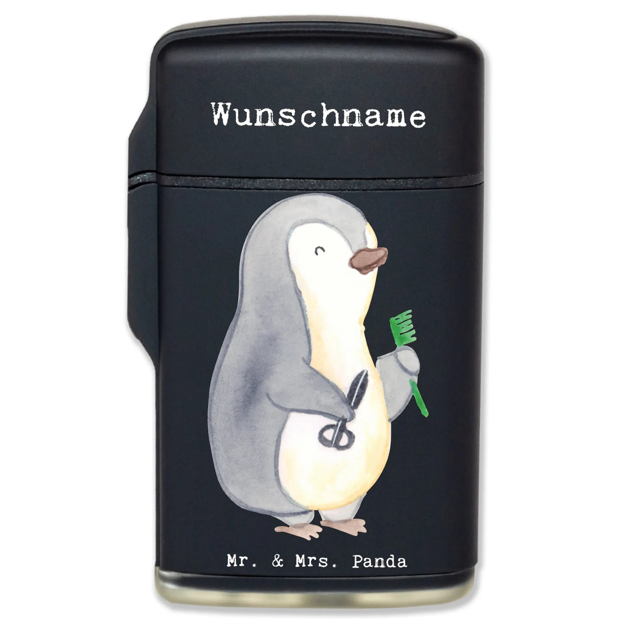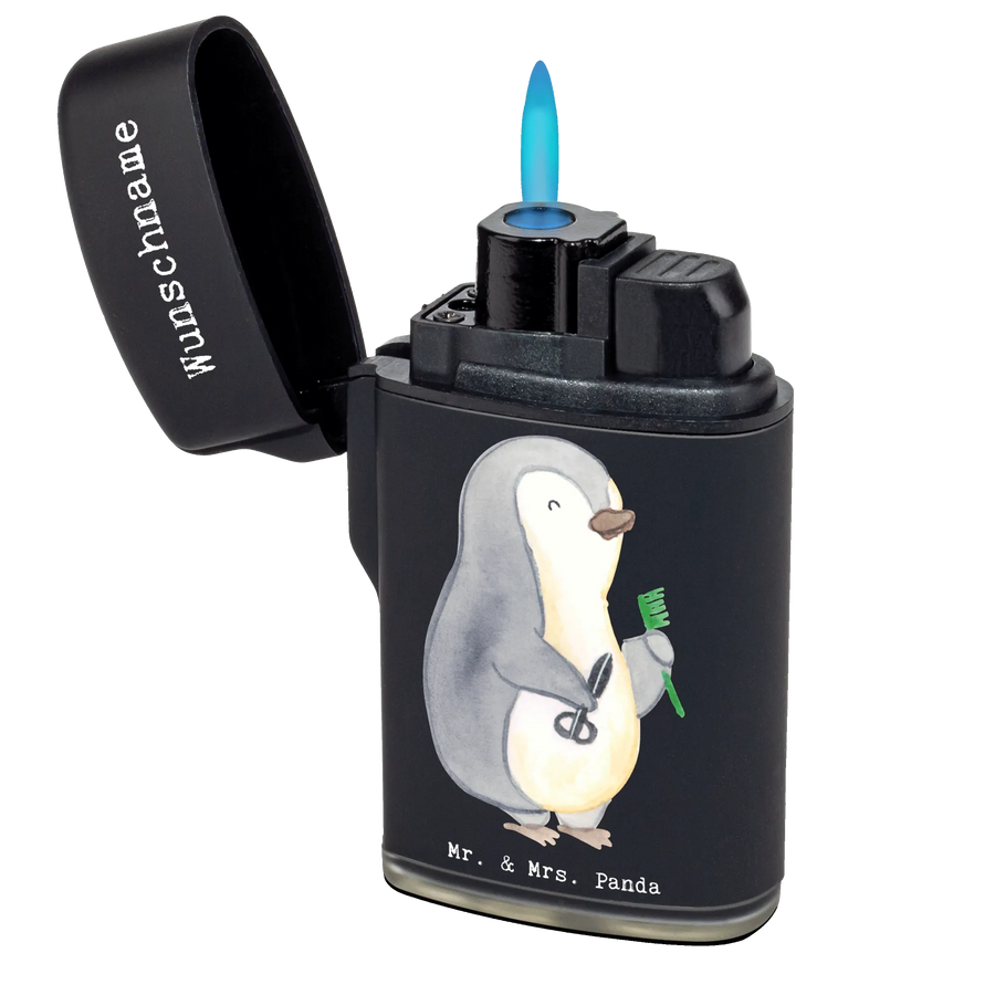 Das personalisierte Feuerzeug "Friseur mit Herz" von Mr. & Mrs. Panda ist das perfekte Geschenk für alle Frisöre und Haarstylisten! Ob für den eigenen Gebrauch oder als liebevolles Geschenk – dieses Feuerzeug ist ein echter Hingucker und zeigt, wie sehr Du Deinen Beruf liebst. Mit dem niedlichen Motiv eines Pinguins, der mit Kamm und Schere ausgestattet ist, bringt es ein Lächeln in jeden Friseursalon.