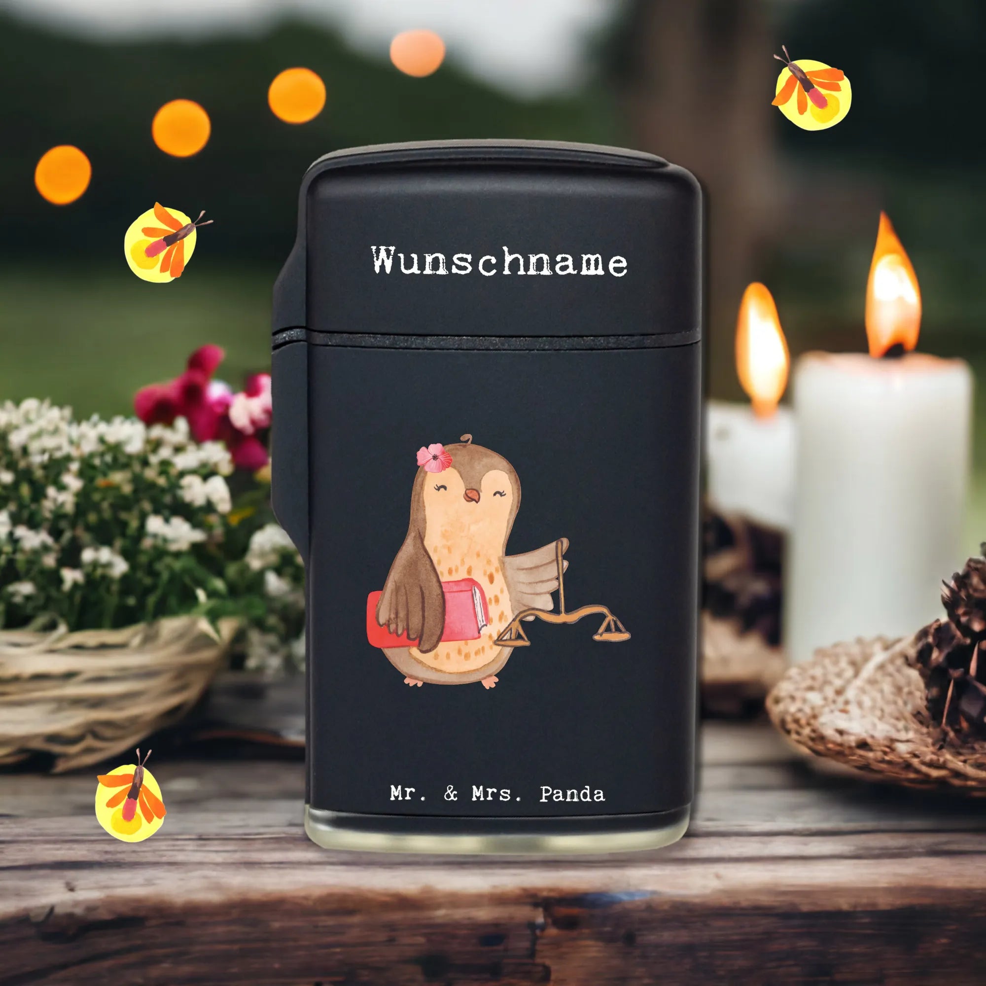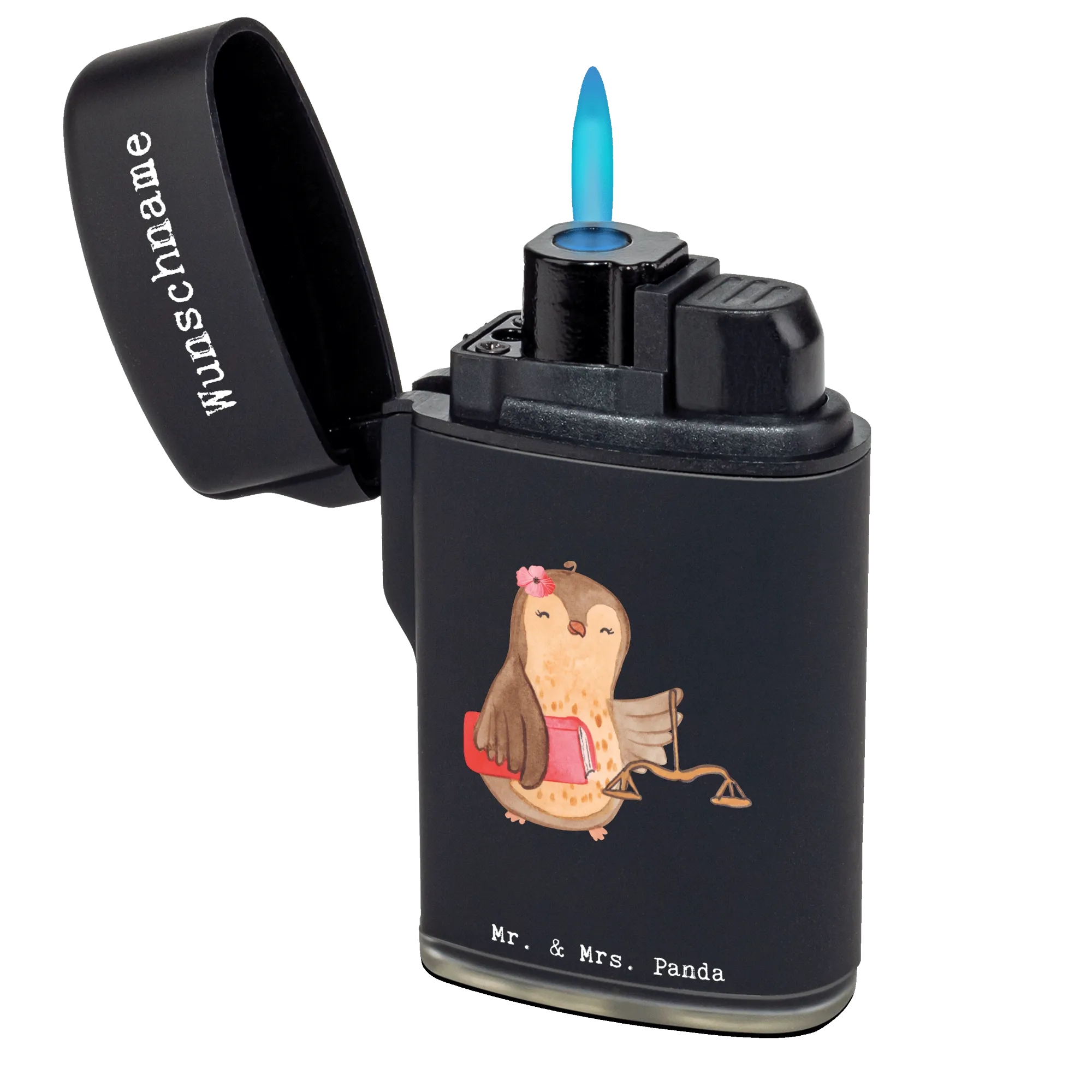 Das personalisierte Feuerzeug Juristin mit Herz von Mr. & Mrs. Panda ist das ideale Geschenk für alle Jura-Studierenden, Anwältinnen und Juristinnen. Es ist nicht nur einfach ein Feuerzeug, sondern ein echtes Statement! Mit seinem süßen Motiv einer kleinen Eule, die stolz ihr Gesetzbuch hält, bringt es ein Lächeln in den Alltag jeder Jura-Expertin.