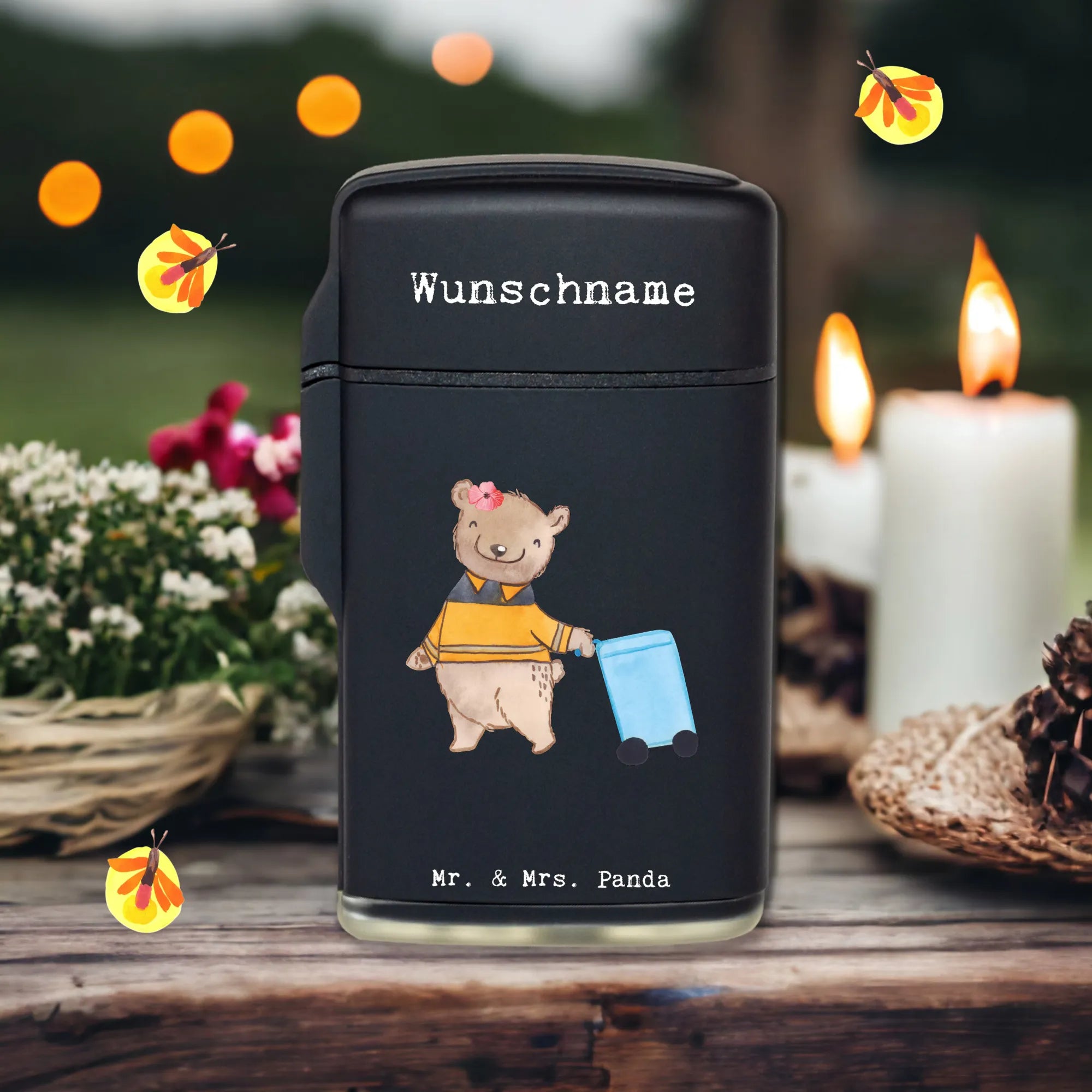 Personalisiertes Feuerzeug Müllwerkerin mit Herz