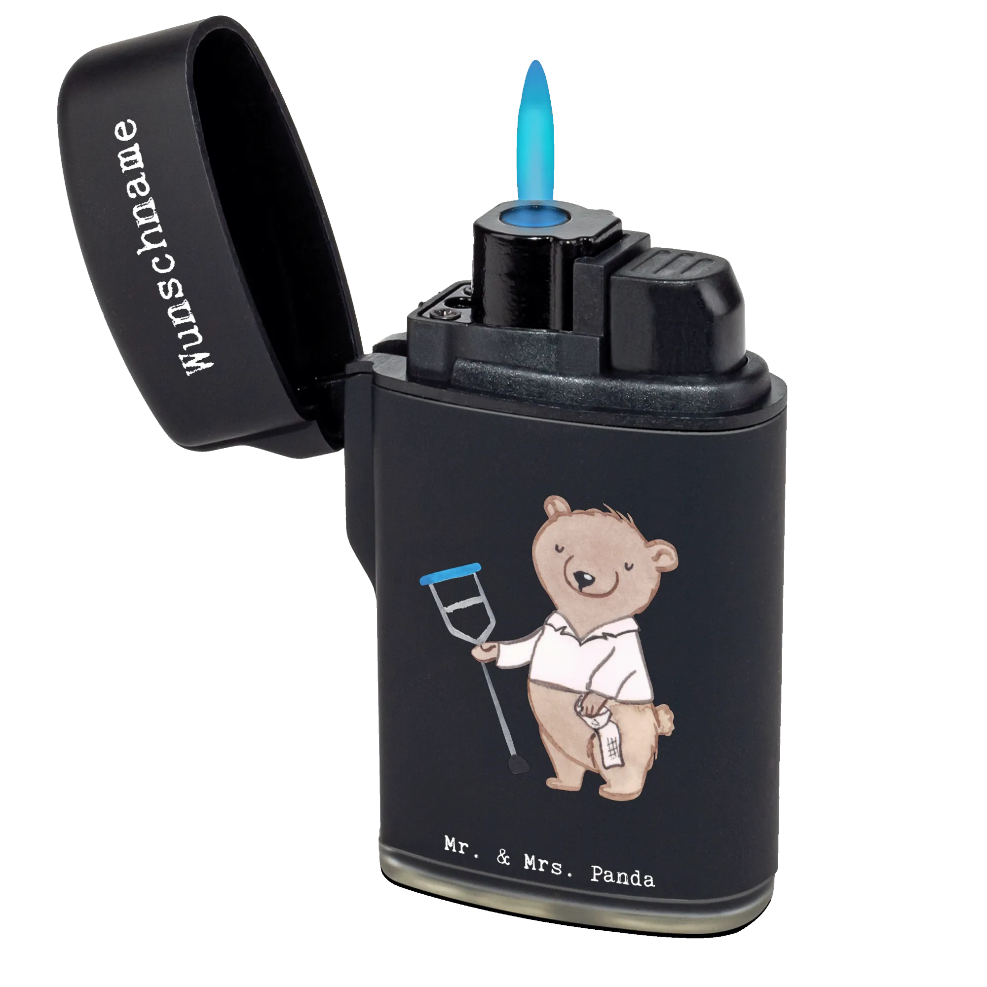 Entdecke unser personalisiertes Feuerzeug "Orthopäde mit Herz" von Mr. & Mrs. Panda! Dieses einzigartige, personalisierbare Feuerzeug ist nicht nur ein praktisches Accessoire, sondern auch ein wunderbares Geschenk für jeden Orthopäden oder Orthopädin. Ob zur Praxis-Eröffnung, zum Berufsjubiläum oder als Dankeschön für einen geschätzten Kollegen – dieses Feuerzeug bringt sicher ein Lächeln auf die Gesichter deiner Freunde oder Mitarbeiter. Mit einem liebevollen Motiv, das einen niedlichen Bären zeigt, der jemandem eine Krücke reicht, und dem witzigen Slogan "Du bist nur ein halber Mensch, wenn du kein Orthopäde bist", wirst du definitiv Eindruck hinterlassen.