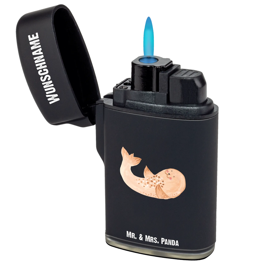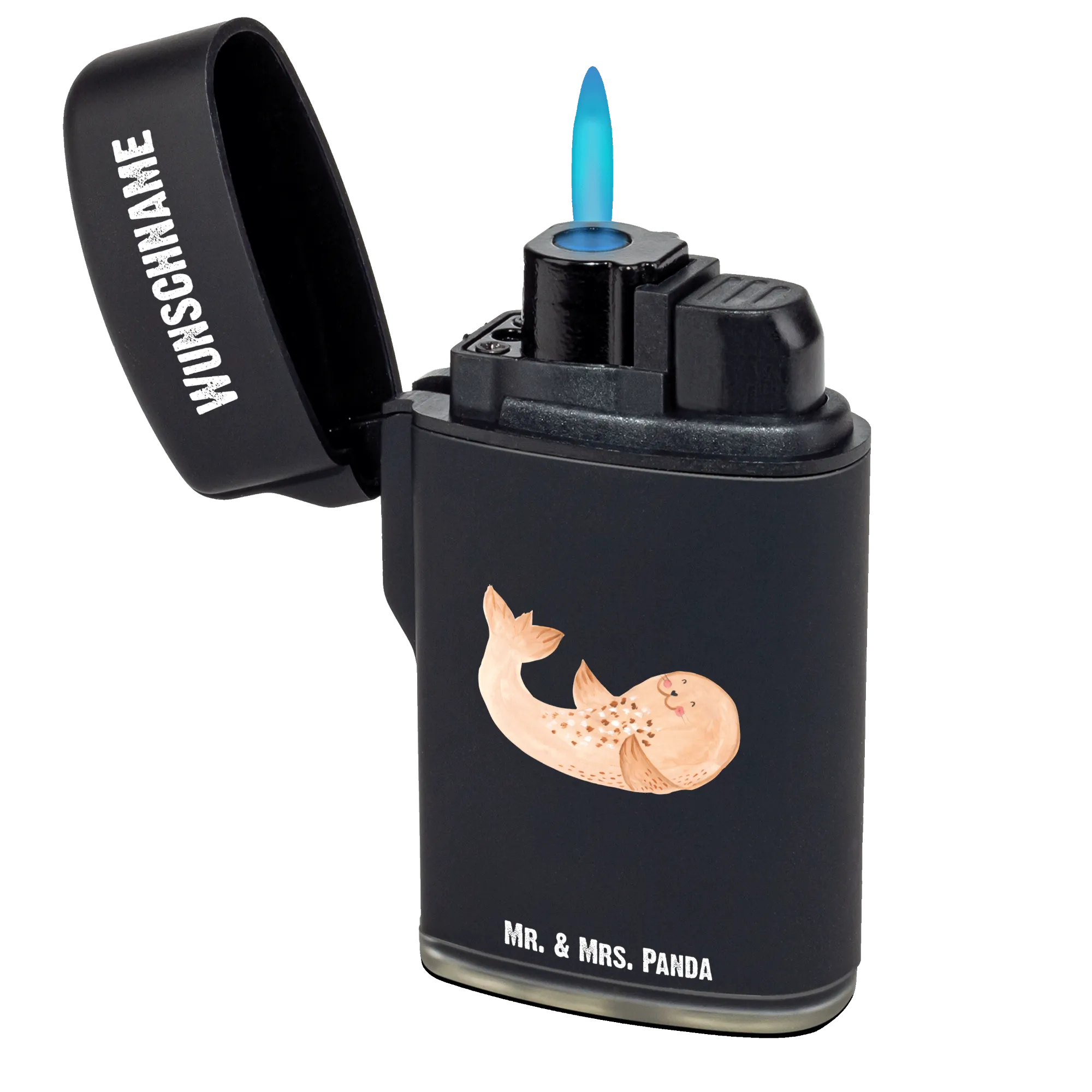 Entdecke das perfekte personalisierte Feuerzeug mit unserer süßen, liegenden Robbe aus der Small World Kollektion von Mr. & Mrs. Panda!