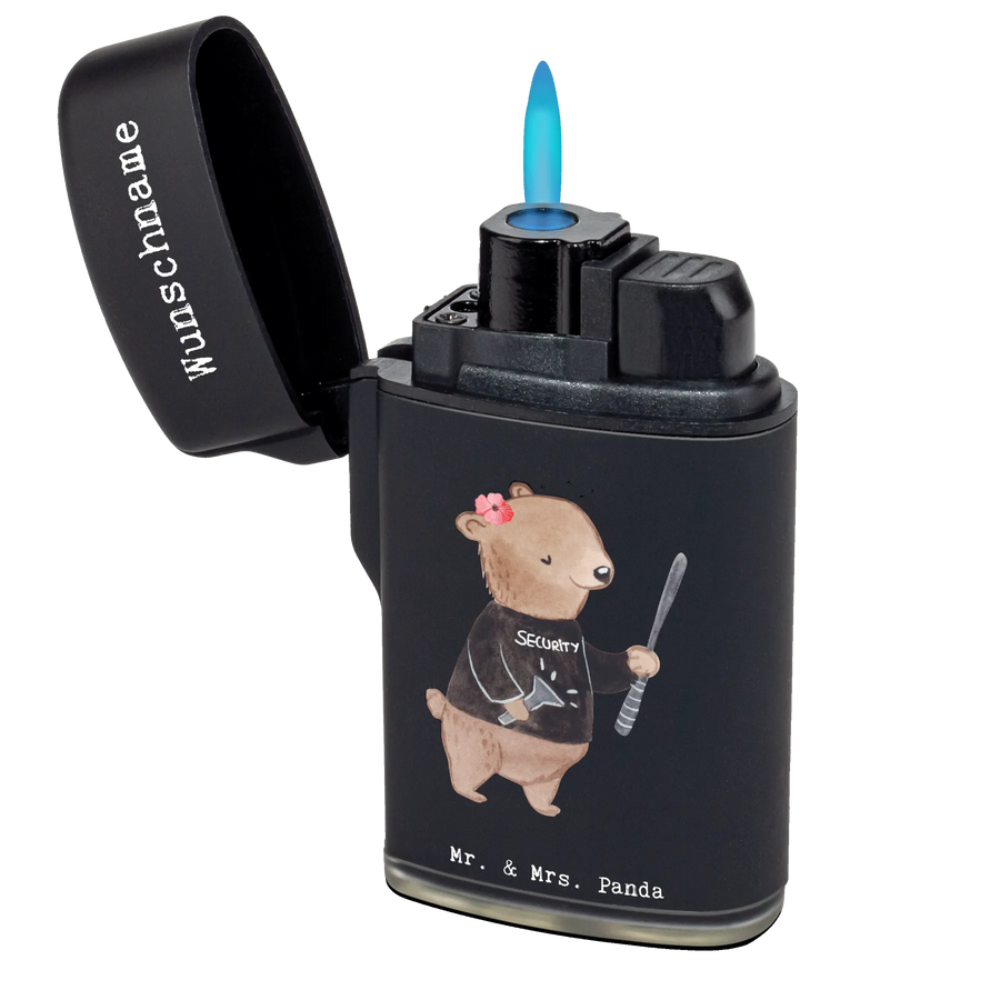 Mit einem süßen Bärenmotiv, der in voller Sicherheitsausrüstung auftritt, sorgt es für ein Lächeln auf dem Gesicht jeder Security Mitarbeiterin. Der Spruch 'Du bist nur ein halber Mensch, wenn du keine Security Mitarbeiterin bist.' unterstreicht, wie wichtig diese Berufsgruppe ist. Die persönliche Note dieses Feuerzeugs, das sich mit deinem Wunschtext oder Namen gravieren lässt, macht es noch einzigartiger.