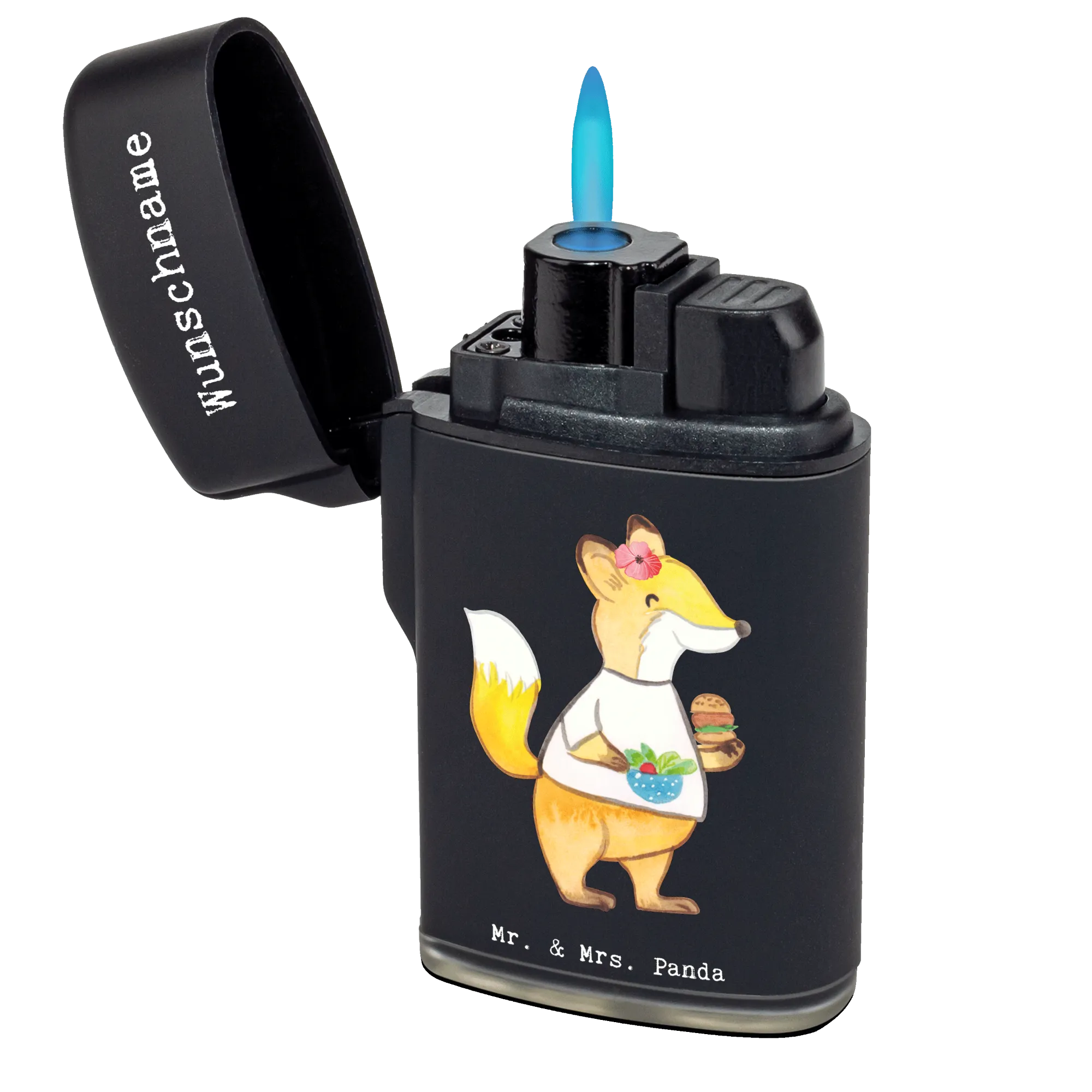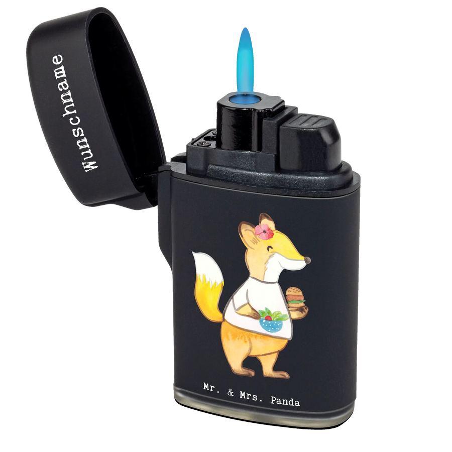 Das personalisierte Feuerzeug „Systemgastronomin mit Herz“ von Mr. & Mrs. Panda ist das perfekte Geschenk für alle, die in der Systemgastronomie tätig sind oder einfach nur die Leidenschaft für gutes Essen und Charm haben. Mit einem liebevoll gestalteten Motiv, einem süßen Fuchs in Kochmontur, der frisch zubereitete Burger und einen Salat serviert, bringt es nicht nur Freude, sondern auch einen Hauch von Humor in den Alltag. Ob als Dankeschön für die tolle Zusammenarbeit mit einem Kollegen oder als kreatives Geschenk zum Berufsabschied oder Jubiläum – dieses Feuerzeug macht überall eine gute Figur.