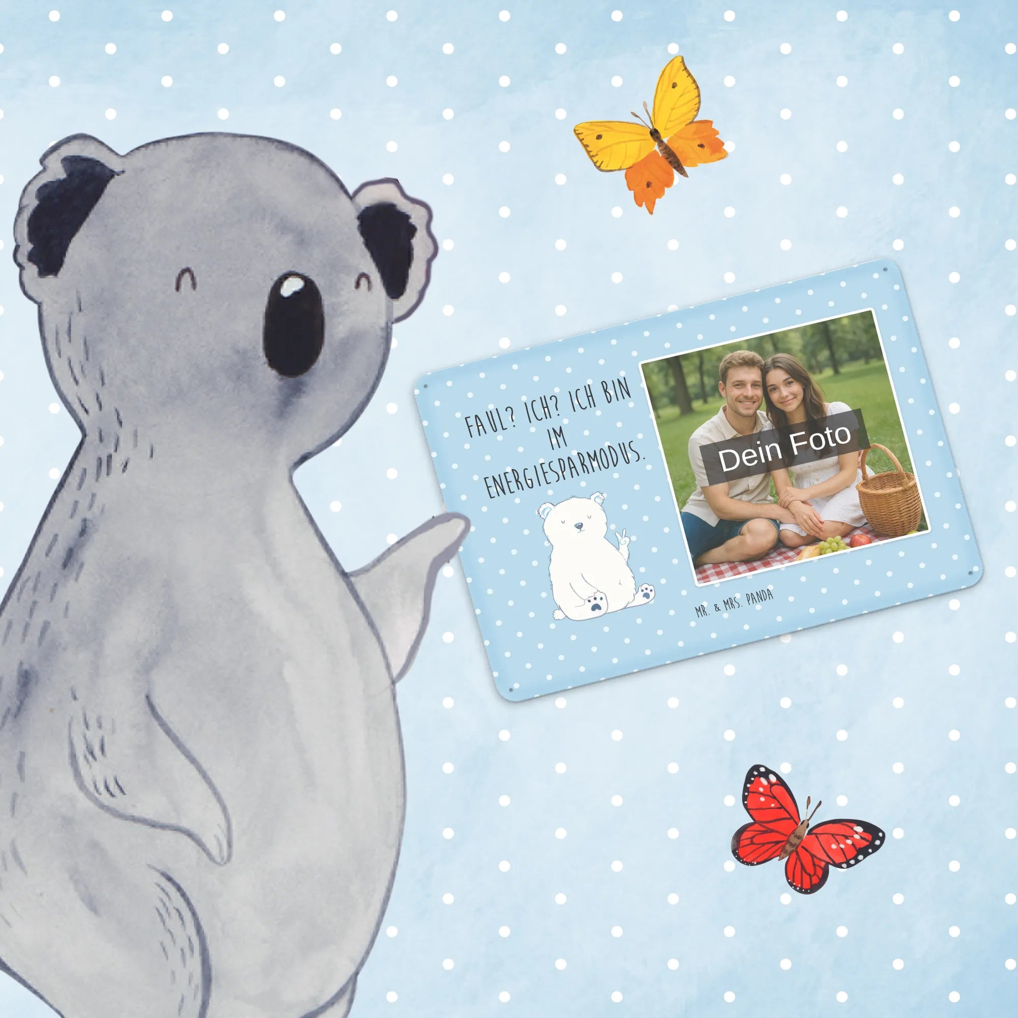 Mach es persönlich: Lade dein Foto hoch und gestalte jetzt dein Foto-Blechschild personalisiert mit Mr. & Mrs. Panda – schnell, einfach und liebevoll gestaltet.
