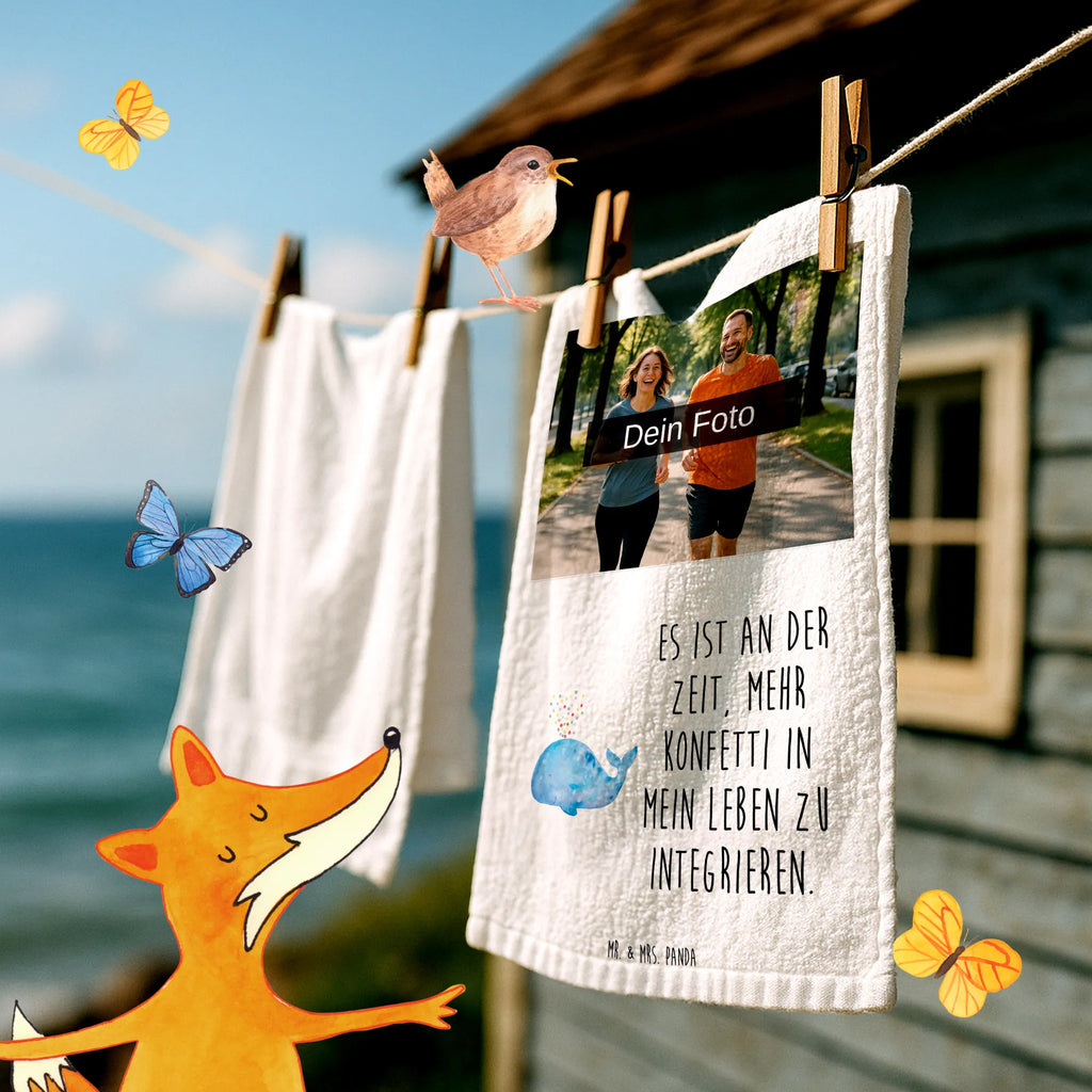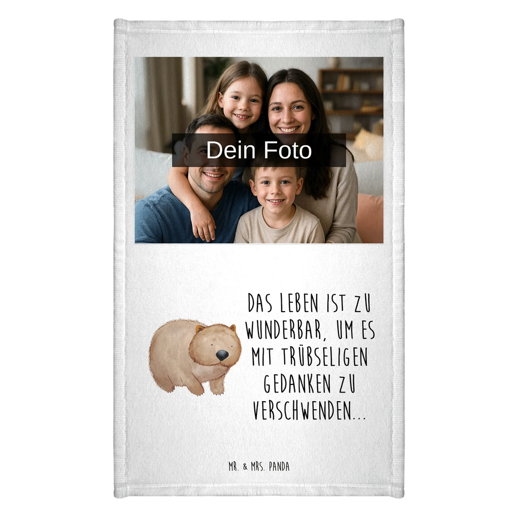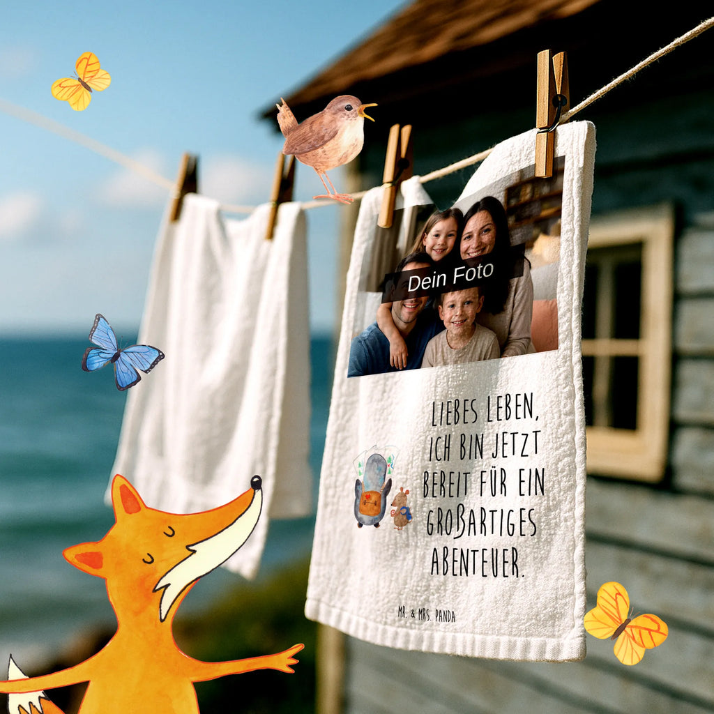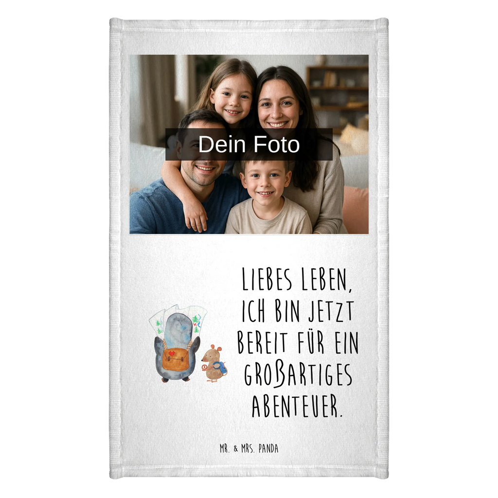 Dieses personalisierte Foto Gästehandtuch von Mr. & Mrs. Panda ist das perfekte Geschenk für jede Gelegenheit. Mit seinen Maßen von 300 mm x 500 mm passt es ideal in jedes Gästebad. Es ist hochwertig bedruckt mit süßen Motiven und Sprüchen, die deinem Zuhause eine besondere Note verleihen. Du kannst es mit deinem ganz persönlichen Wunschfoto anpassen - einfach ein Bild hochladen! Achte darauf, dass das Foto in hoher Auflösung vorliegt, um ein klares Druckergebnis zu gewährleisten. Ob zu deinem Geburtstag, zur Einweihung oder einfach für dich selbst, das Handtuch bringt Farbe und Freude in dein Badezimmer. Besonders weich und flauschig aus einer Baumwollmischung gefertigt, sorgt es für ein angenehmes Gefühl auf der Haut. Zudem ist es bei 30°C einfach in der Waschmaschine waschbar – unkompliziert und pflegeleicht! Verpasse deinem Badezimmer mit diesem Handtuch einen fröhlichen Look!