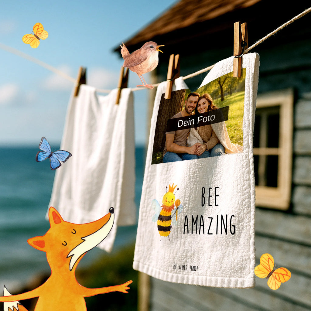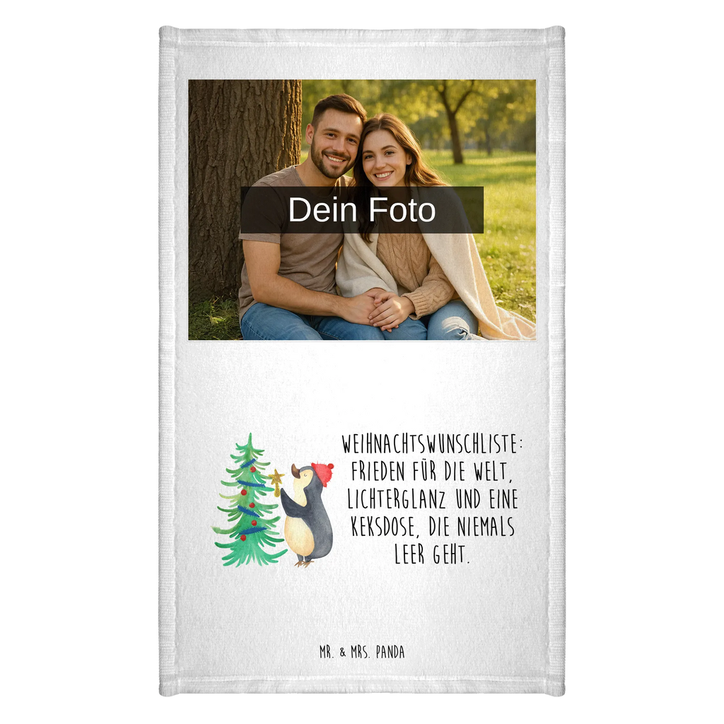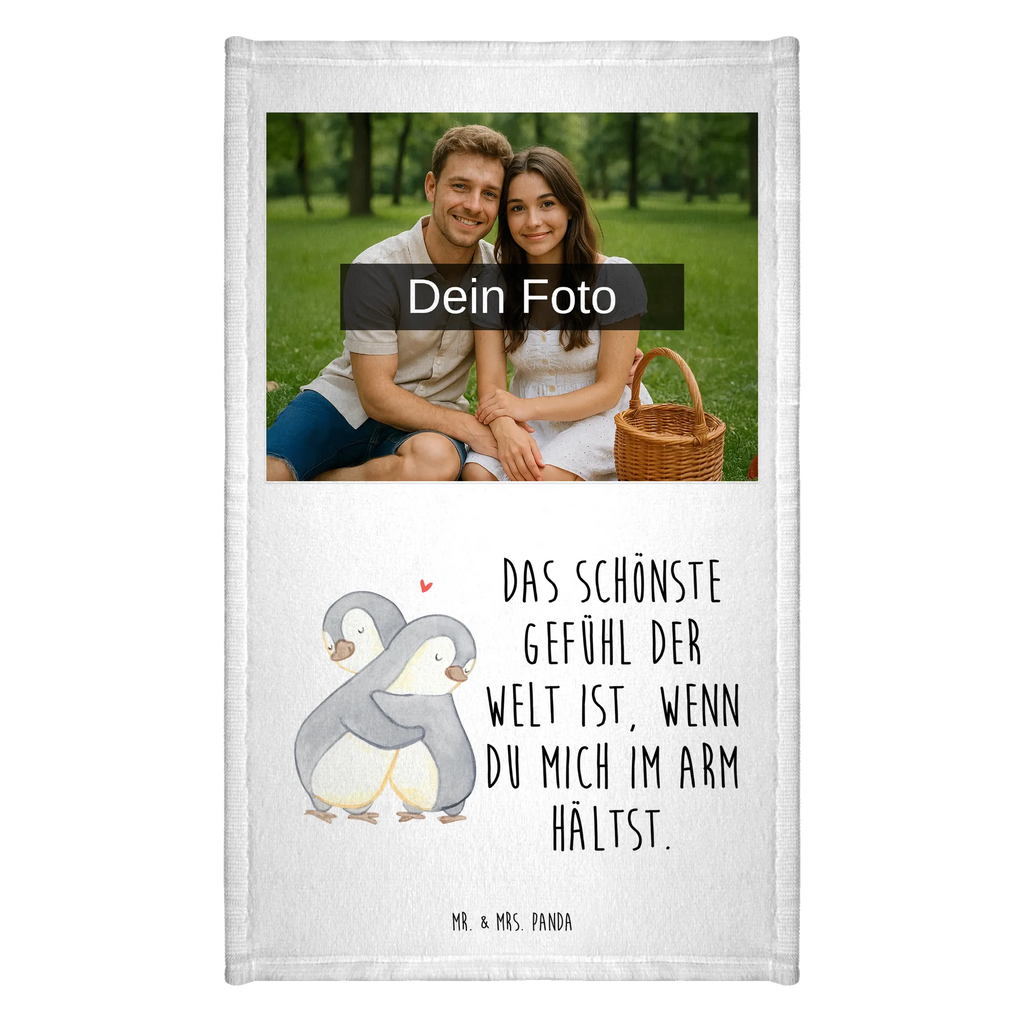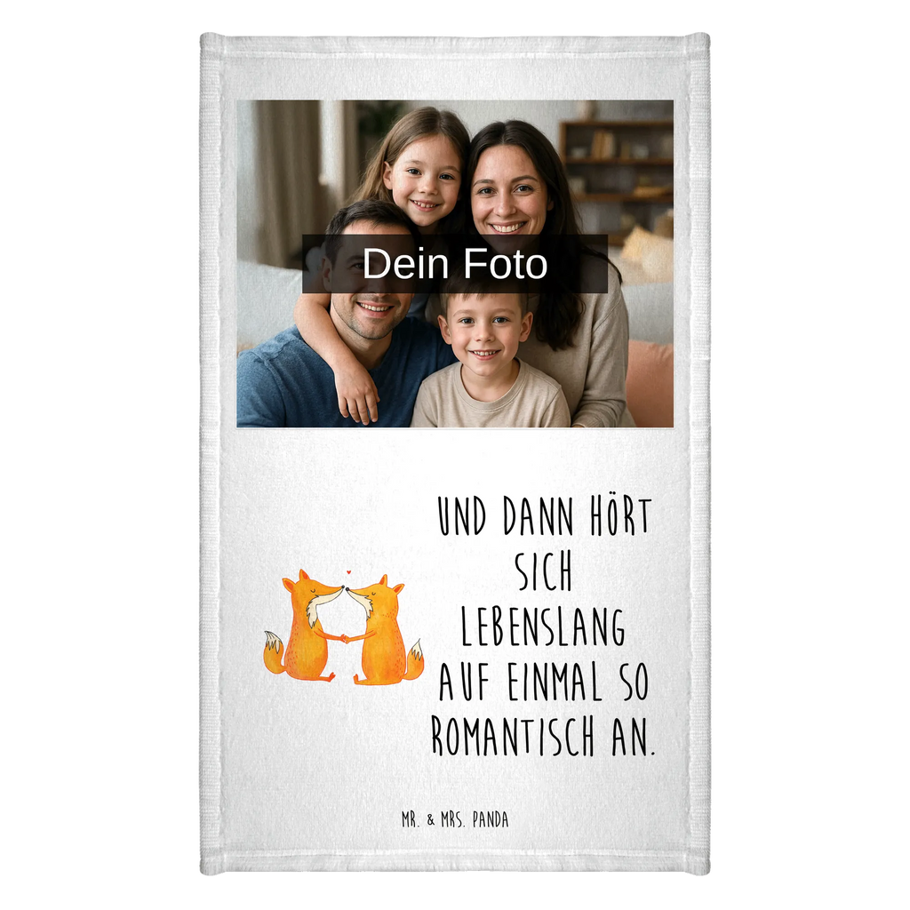Dieses personalisierte Foto Gästehandtuch von Mr. & Mrs. Panda ist das perfekte Geschenk für jede Gelegenheit. Mit seinen Maßen von 300 mm x 500 mm passt es ideal in jedes Gästebad. Es ist hochwertig bedruckt mit süßen Motiven und Sprüchen, die deinem Zuhause eine besondere Note verleihen. Du kannst es mit deinem ganz persönlichen Wunschfoto anpassen - einfach ein Bild hochladen! Achte darauf, dass das Foto in hoher Auflösung vorliegt, um ein klares Druckergebnis zu gewährleisten. Ob zu deinem Geburtstag, zur Einweihung oder einfach für dich selbst, das Handtuch bringt Farbe und Freude in dein Badezimmer. Besonders weich und flauschig aus einer Baumwollmischung gefertigt, sorgt es für ein angenehmes Gefühl auf der Haut. Zudem ist es bei 30°C einfach in der Waschmaschine waschbar – unkompliziert und pflegeleicht! Verpasse deinem Badezimmer mit diesem Handtuch einen fröhlichen Look!