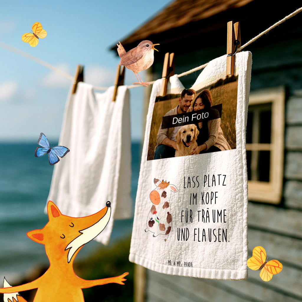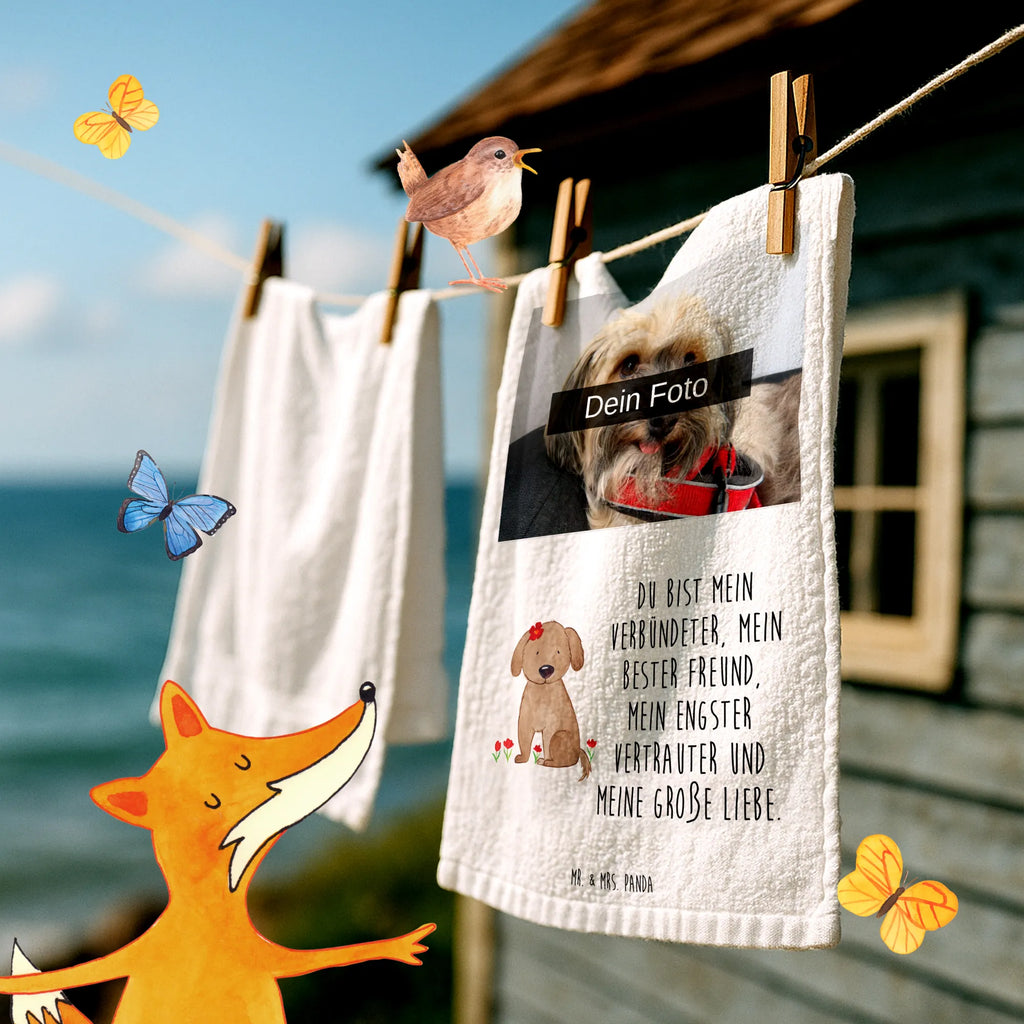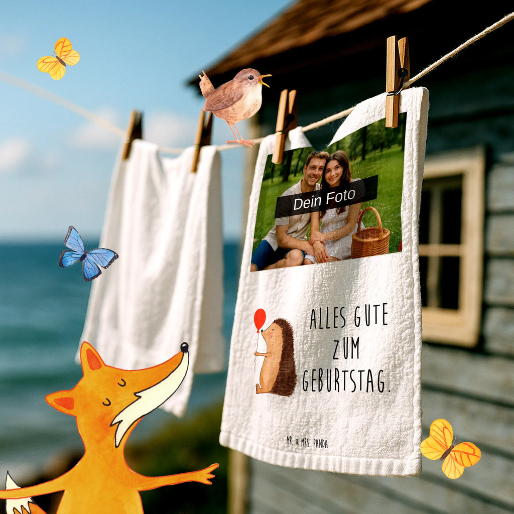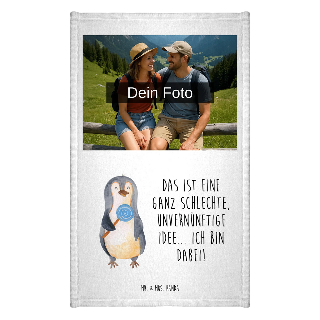 Dieses personalisierte Foto Gästehandtuch von Mr. & Mrs. Panda ist das perfekte Geschenk für jede Gelegenheit. Mit seinen Maßen von 300 mm x 500 mm passt es ideal in jedes Gästebad. Es ist hochwertig bedruckt mit süßen Motiven und Sprüchen, die deinem Zuhause eine besondere Note verleihen. Du kannst es mit deinem ganz persönlichen Wunschfoto anpassen - einfach ein Bild hochladen! Achte darauf, dass das Foto in hoher Auflösung vorliegt, um ein klares Druckergebnis zu gewährleisten. Ob zu deinem Geburtstag, zur Einweihung oder einfach für dich selbst, das Handtuch bringt Farbe und Freude in dein Badezimmer. Besonders weich und flauschig aus einer Baumwollmischung gefertigt, sorgt es für ein angenehmes Gefühl auf der Haut. Zudem ist es bei 30°C einfach in der Waschmaschine waschbar – unkompliziert und pflegeleicht! Verpasse deinem Badezimmer mit diesem Handtuch einen fröhlichen Look!