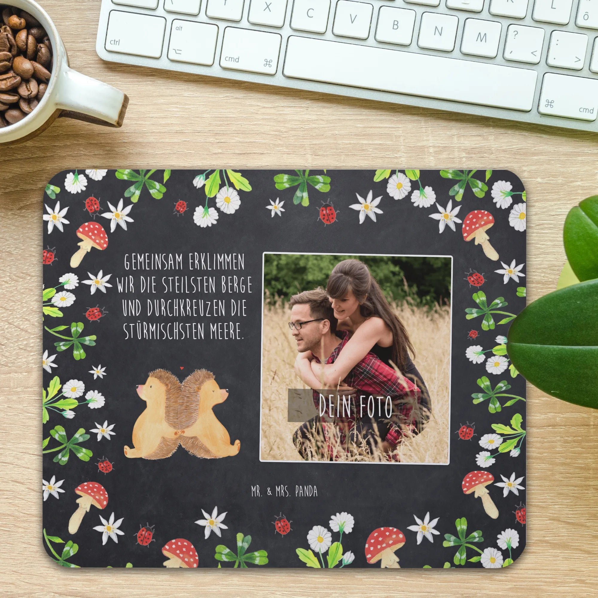Ein persönliches Geschenk voller Liebe: Das personalisierte Foto Mauspad „Igel händchenhaltend“ aus der Liebe-Kollektion von Mr. & Mrs. Panda verbindet Zärtlichkeit und Alltag. Zwei niedliche Igel halten Händchen, ein kleines rotes Herz schwebt dazwischen, und der liebevolle Spruch „Gemeinsam erklimmen wir die steilsten Berge und durchkreuzen die stürmischsten Meere.“ macht das Motiv zum perfekten Liebesgeschenk für Jahrestag, Verlobung, Hochzeit oder Valentinstag.