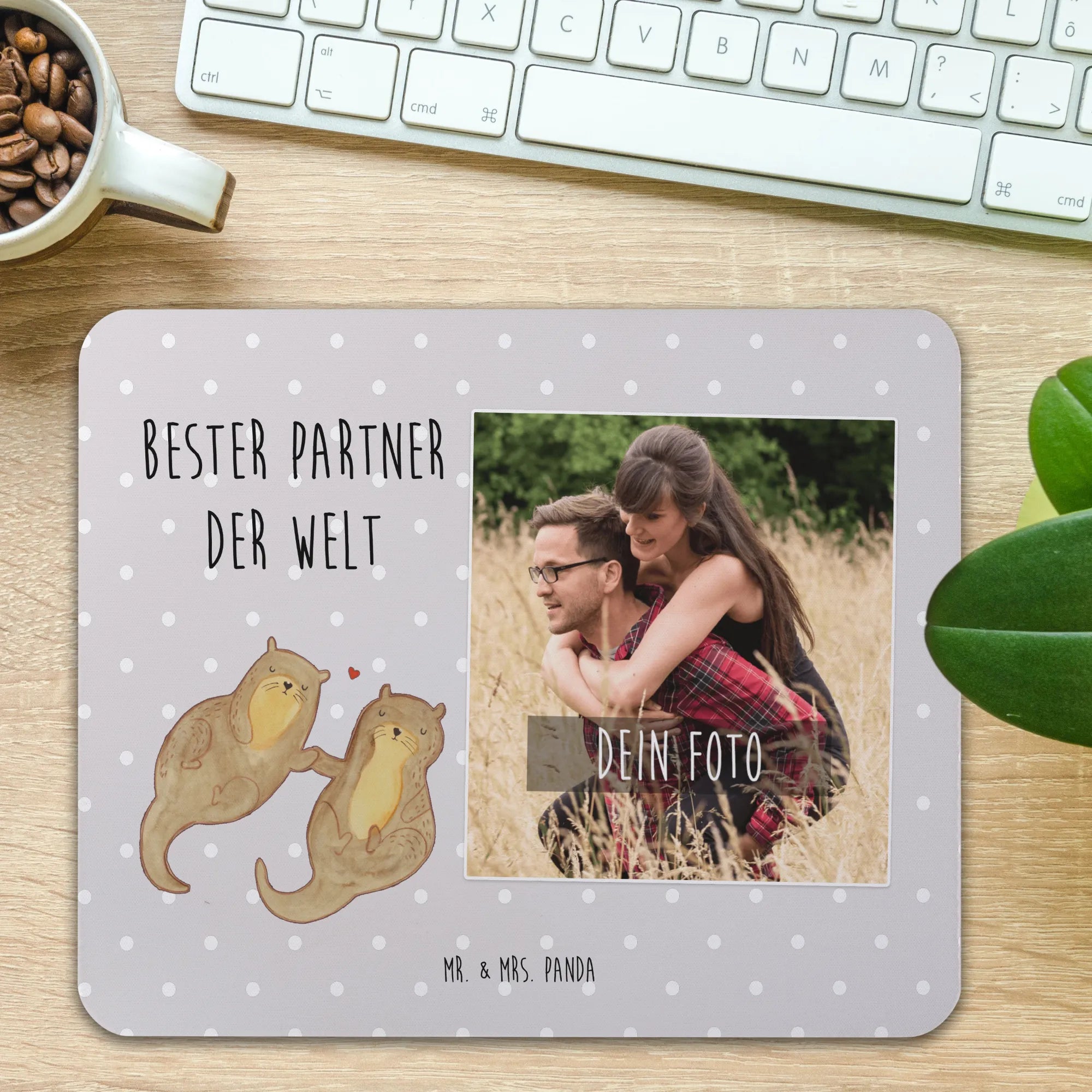 Das personalisierte Foto Mauspad mit dem niedlichen Motiv der Otter "Bester Partner der Welt" ist das perfekte Geschenk für alle Paare, die ihre Liebe und Verbundenheit auf eine besondere Weise feiern möchten. Egal ob zu einem Geburtstag, als kleines Dankeschön oder einfach um einem geliebten Menschen eine Freude zu machen – dieses Mauspad zaubert jedem ein Lächeln ins Gesicht. Die beiden süßen Otter, die sich an den Händen halten, stehen für Liebe und Zusammenhalt und sind der ideale Hintergrund für dein Lieblingsfoto.