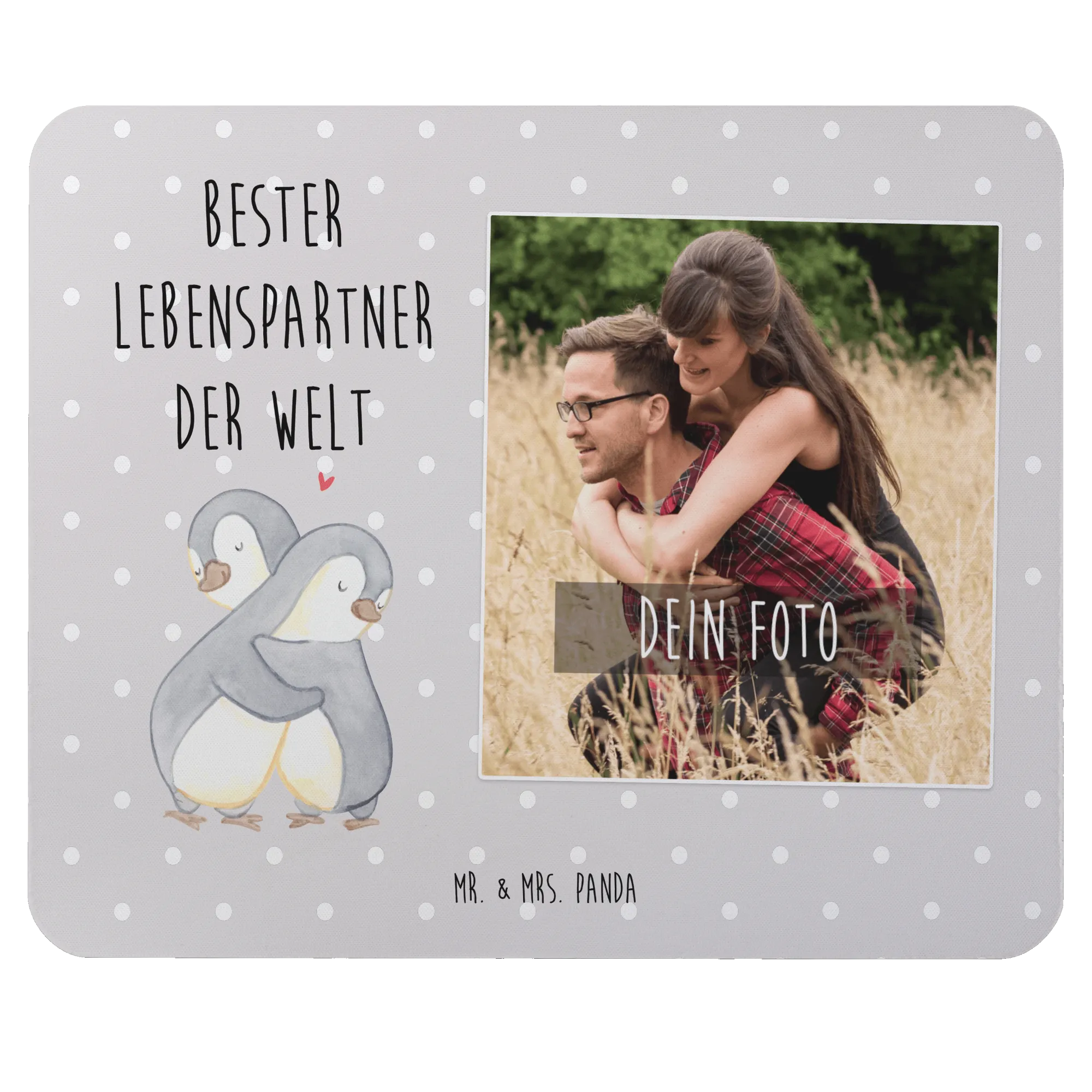 Das personalisierte Foto Mauspad "Bester Lebenspartner der Welt" von Mr. & Mrs. Panda ist das ideale Geschenk für deinen Lebenspartner oder die Liebe deines Lebens. Mit einem bezaubernden Motiv von zwei niedlichen Pinguinen, die sich verliebt umarmen, wird dieses Mauspad nicht nur zum praktischen Begleiter für den Arbeitsalltag oder das Homeoffice, sondern bringt auch Freude und Liebe in deinen Alltag.