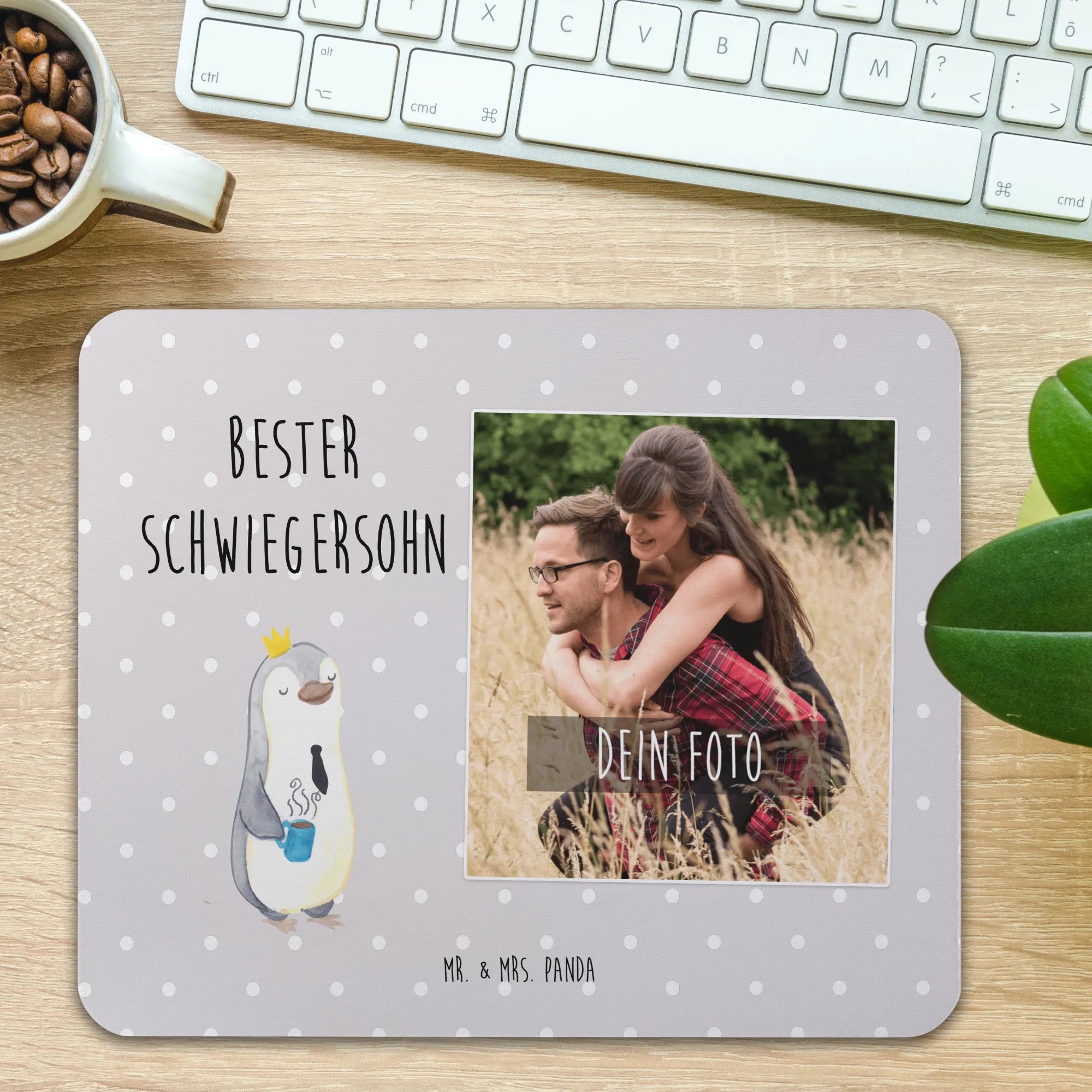 Das personalisierte Foto Mauspad "Pinguin Bester Schwiegersohn" von Mr. & Mrs. Panda ist nicht nur ein schöner Hingucker für deinen Arbeitsplatz, sondern auch ein ganz besonderes Geschenk, das von Herzen kommt. Dieses Mauspad ist perfekt geeignet für deinen Schwiegersohn, der eine besondere Rolle in deiner Familie spielt. Mit einem niedlichen Pinguin, der eine Krone trägt und einen Kaffee hält, verschönerst du jeden Schreibtisch und sorgst für ein Lächeln am Arbeitsplatz oder beim Homeoffice.