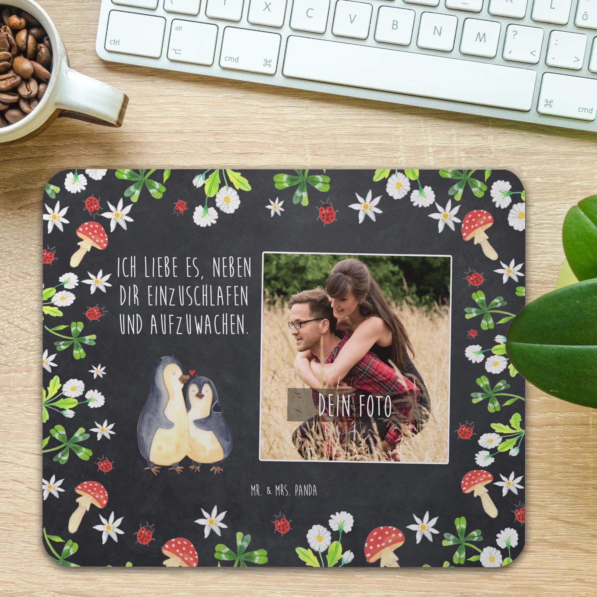 Das personalisierte Foto Mauspad von Mr. & Mrs. Panda ist das perfekte Geschenk für alle Liebenden! Mit dem süßen Motiv "Pinguine Einschlafen" strahlt es nicht nur Wärme und Geborgenheit aus, sondern macht auch jeden Arbeitsplatz zu einem Ort der Liebe.