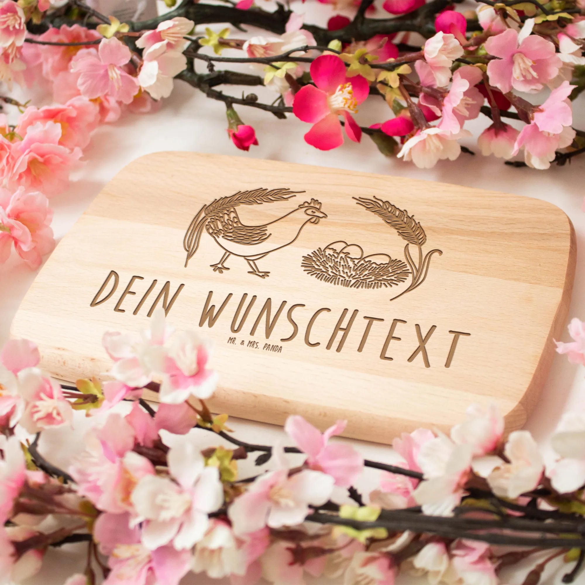 Das personalisierte Frühstücksbrett "Huhn stolz" von Mr. & Mrs. Panda ist das perfekte Geschenk für alle, die das Landleben lieben und Freude an tierischen Motiven haben.