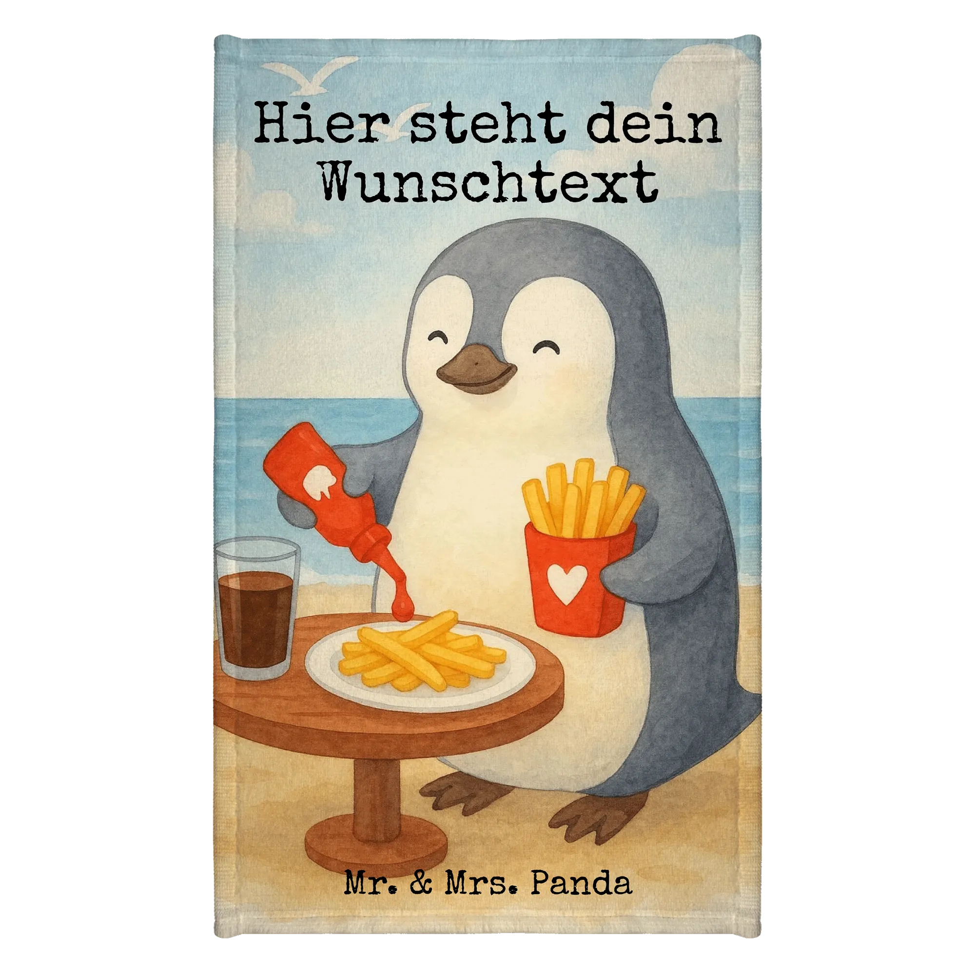 Handtuch personalisiert Pinguin Pommes Design
