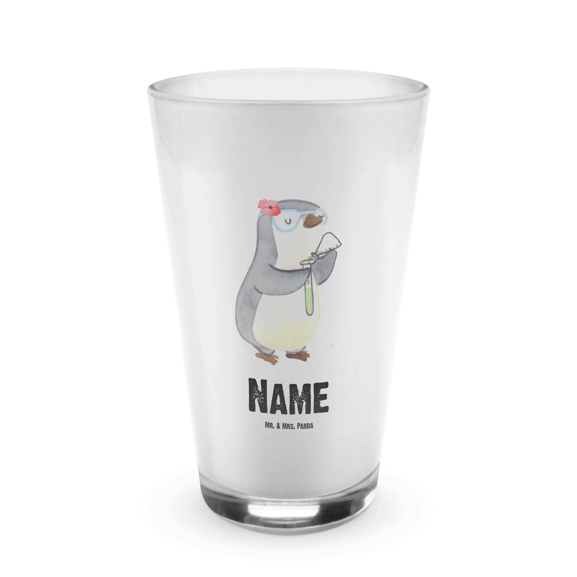 Das personalisierte Glas "Chemielaborantin mit Herz" von Mr. & Mrs. Panda ist das perfekte Geschenk für all die wunderbaren Chemikerinnen und Chemielaborantinnen unter uns! Es strahlt nicht nur in brillianten Farben, sondern erzählt auch eine herzerwärmende Geschichte. Dieser süße Pinguin mit einem Reagenzglas in der Hand zeigt die Liebe zur Chemie und zur Wissenschaft.