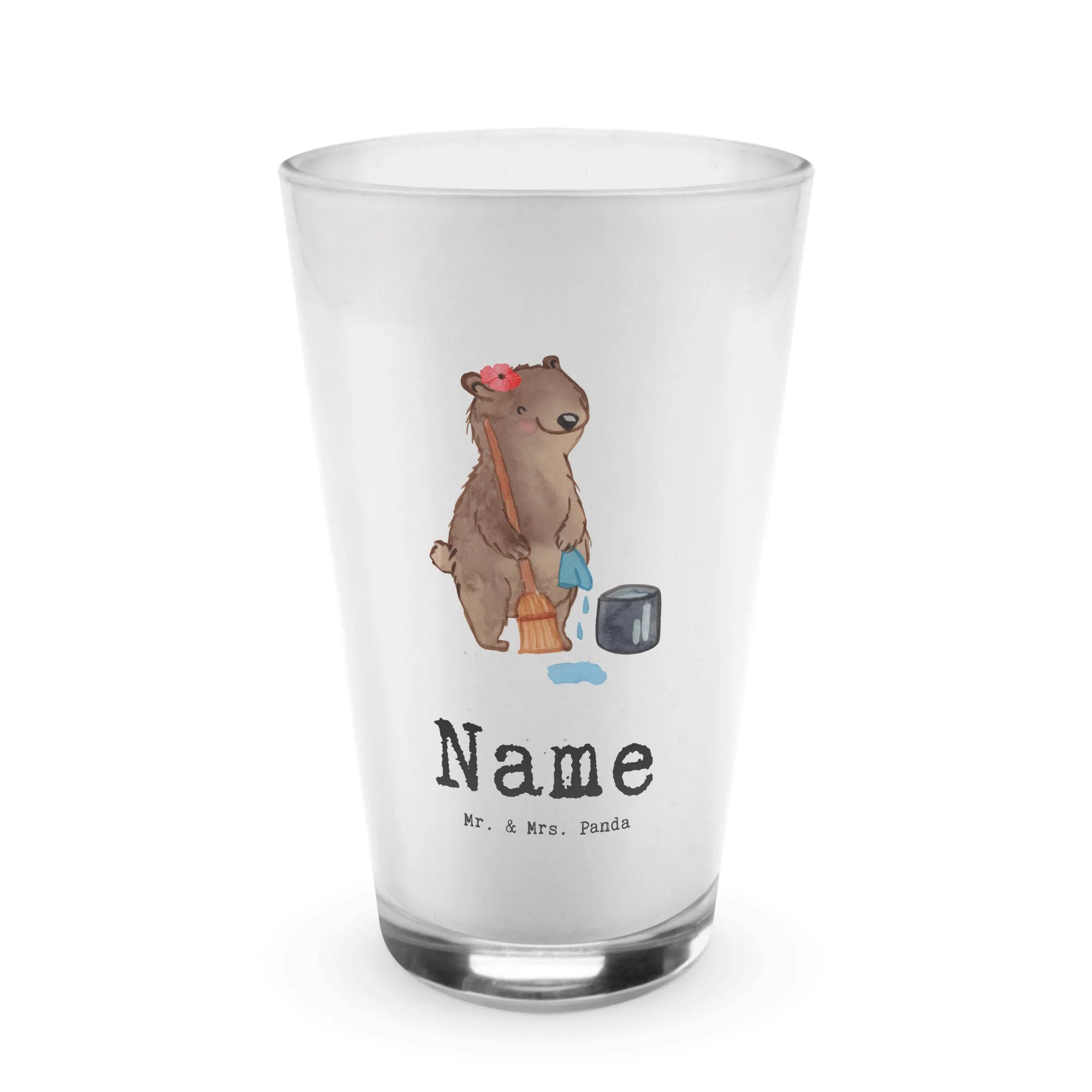 Wenn du nach einem besonderen Geschenk für eine Reinigungskraft suchst, dann ist unser personalisiertes Glas mit dem süßen Motiv "Reinigungskraft mit Herz" genau das Richtige! Dieses edle und wunderschöne Glas von Mr. & Mrs. Panda lässt sich ganz individuell mit deinem Wunschtext oder Wunschnamen personalisieren und macht es somit zu einem einzigartigen Geschenk.