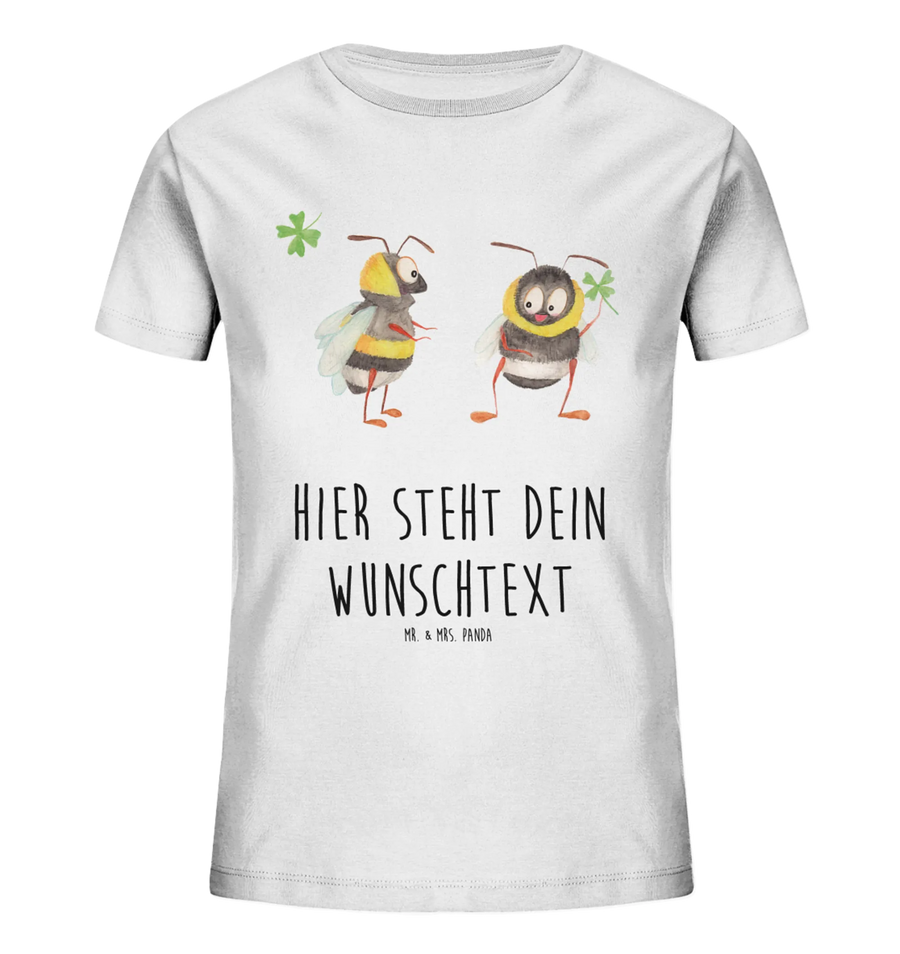 Das personalisierte Kinder T-Shirt "Hummeln mit Kleeblatt" aus der bezaubernden Small World Kollektion von Mr. & Mrs. Panda ist das ideale Geschenk für kleine Glücksbringer. Mit einem fröhlichen Design, das zwei süße Hummeln zeigt, die ein Kleeblatt halten, verbreitet es pure Lebensfreude. Dieses T-Shirt stellt nicht nur eine farbenfrohe Bereicherung für den Kleiderschrank deines Kindes dar, sondern motiviert auch, glücklich zu sein. Gefertigt aus 100 % Bio-Baumwolle in bester Qualität ist es angenehm zu tragen und freundlich zur Kinderhaut.