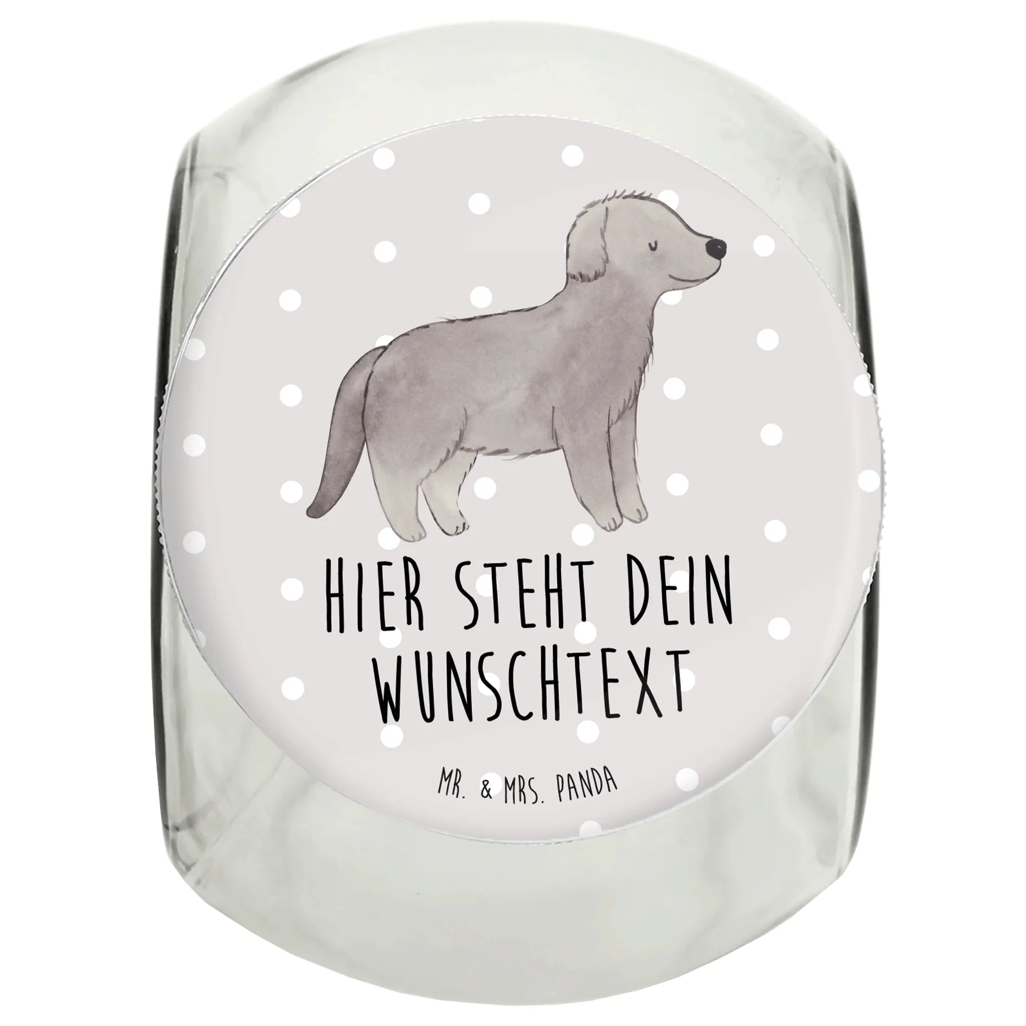 Das personalisierte Leckerli Glas mit dem Motiv "Mein Lebensretter ist ein Neufundländer" von Mr. & Mrs. Panda ist das perfekte Geschenk für Hunde- und Tierliebhaber. Ob zum Geburtstag, zu Weihnachten oder einfach als besondere Überraschung für einen guten Freund oder eine liebe Person – dieses wunderschöne Glas ist ein echtes Highlight. Die Darstellung eines freundlichen Neufundländers, umgeben von sanften Grautönen, bietet nicht nur einen optischen Genuss, sondern verleiht dem Glas auch eine persönliche Note. Du kannst es mit einem Namen oder einem individuellen Wunschtext personalisieren, was es zu einem besonders einzigartigen Geschenk macht.