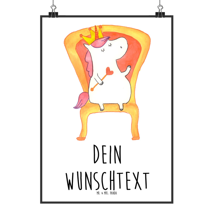 Dieses wunderschöne und edle personalisierte Poster von Mr. & Mrs. Panda bringt strahlende Freude in jedes Kinderzimmer. Es zeigt ein niedliches Einhorn, das stolz auf einem Thron sitzt und eine Krone trägt, umgeben von bunten, lebendigen Farben, die sofort ins Auge fallen.