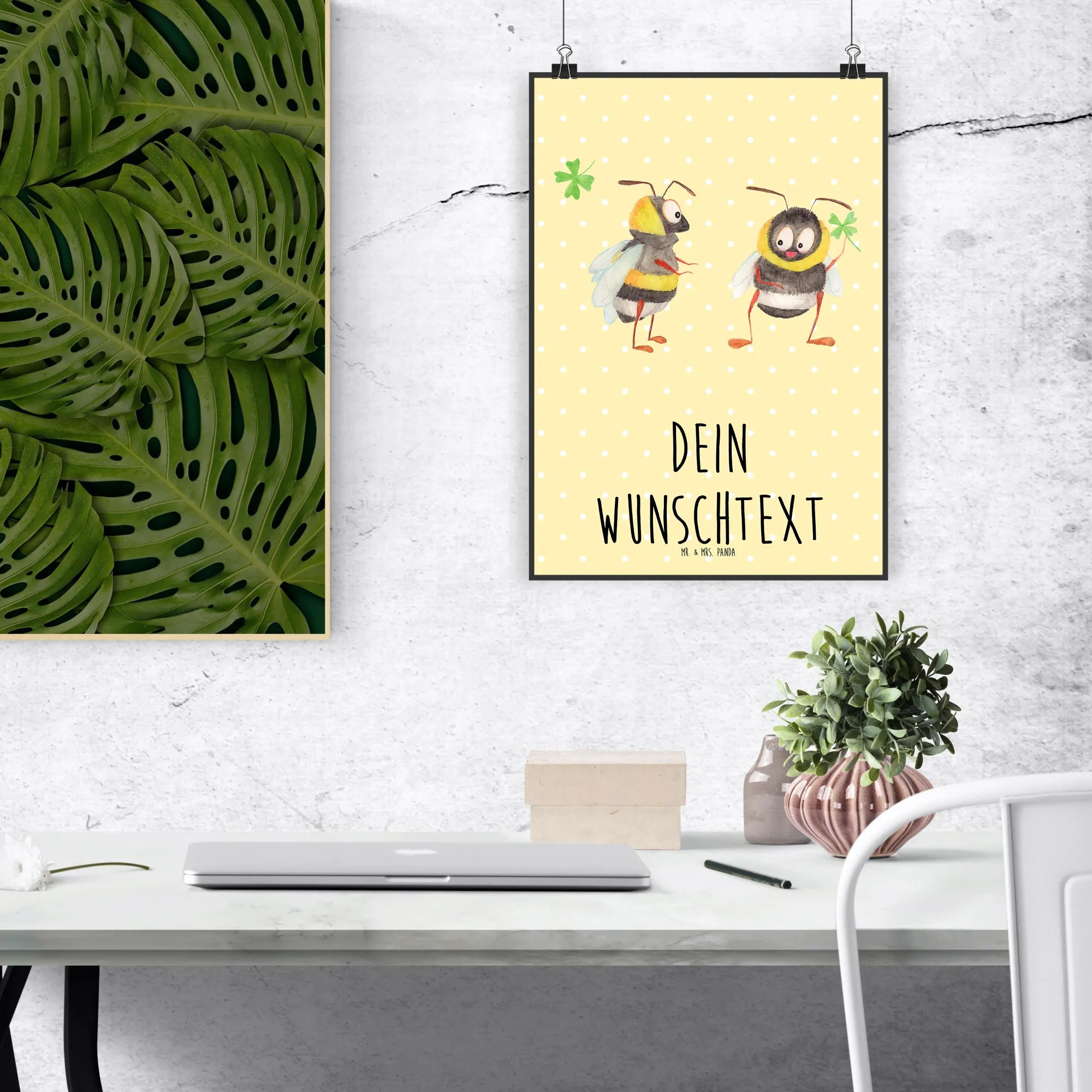 Personalisiertes Poster Hummeln mit Kleeblatt - DIN A0 - Gelb Pastell