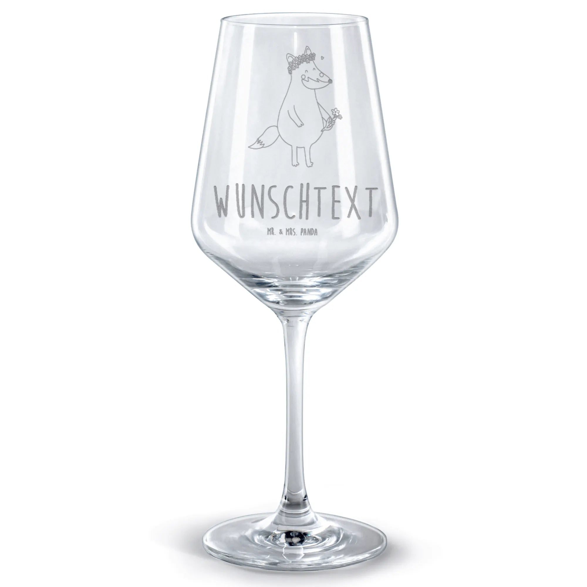 Personalisiertes Rotwein Glas Fuchs Blumenliebe
