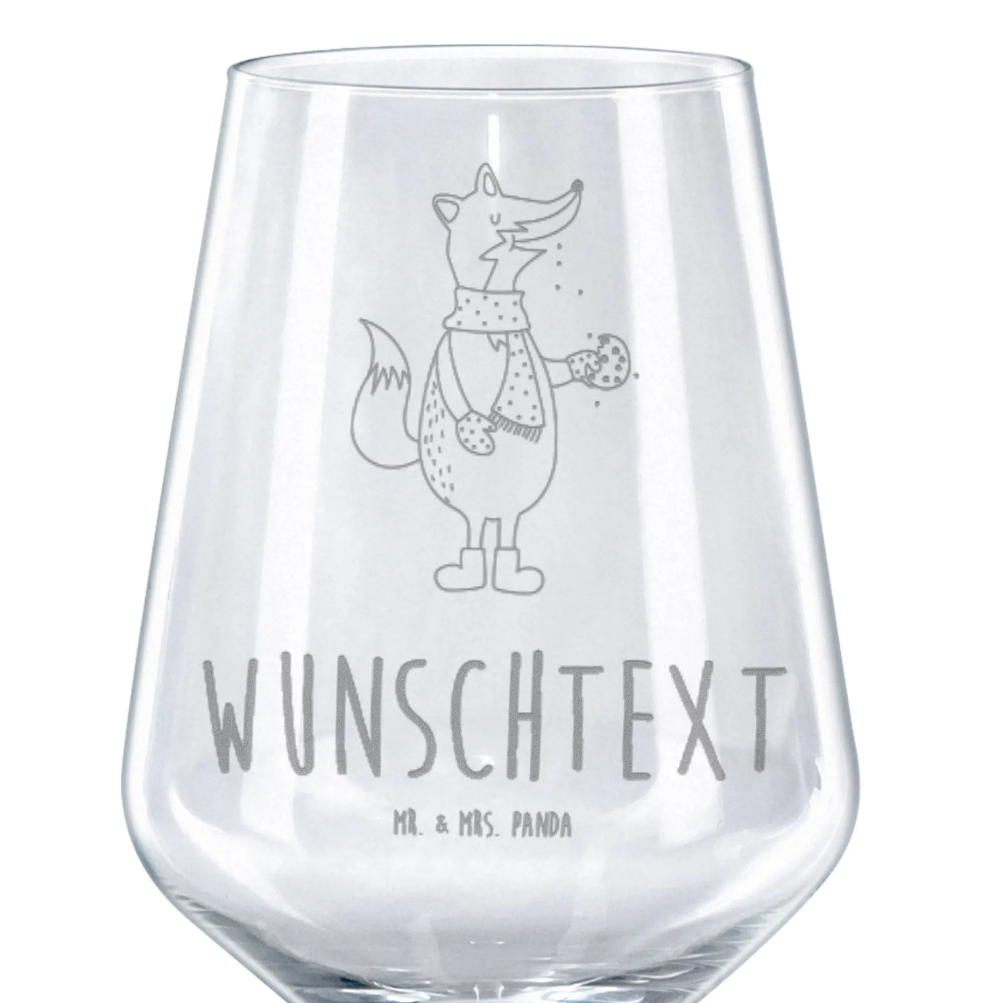 Das personalisierte Rotweinglas aus hochwertigem Premium Glas ist Teil der bezaubernden Fuchs Kollektion von Mr. & Mrs. Panda und zeigt einen fröhlichen Fuchs, der sich genüsslich an einem Keks labt. Dieses Design wird jeden verzaubern - ob als Geschenk für einen besonderen Anlass oder um dein eigenes Zuhause mit einem Hauch von Liebe und Wärme zu bereichern. Die hochwertige Lasergravur sorgt für einen matteffekt, der nicht nur stilvoll aussieht, sondern das Glas auch zu einem langlebigen Begleiter für viele besondere Momente macht.