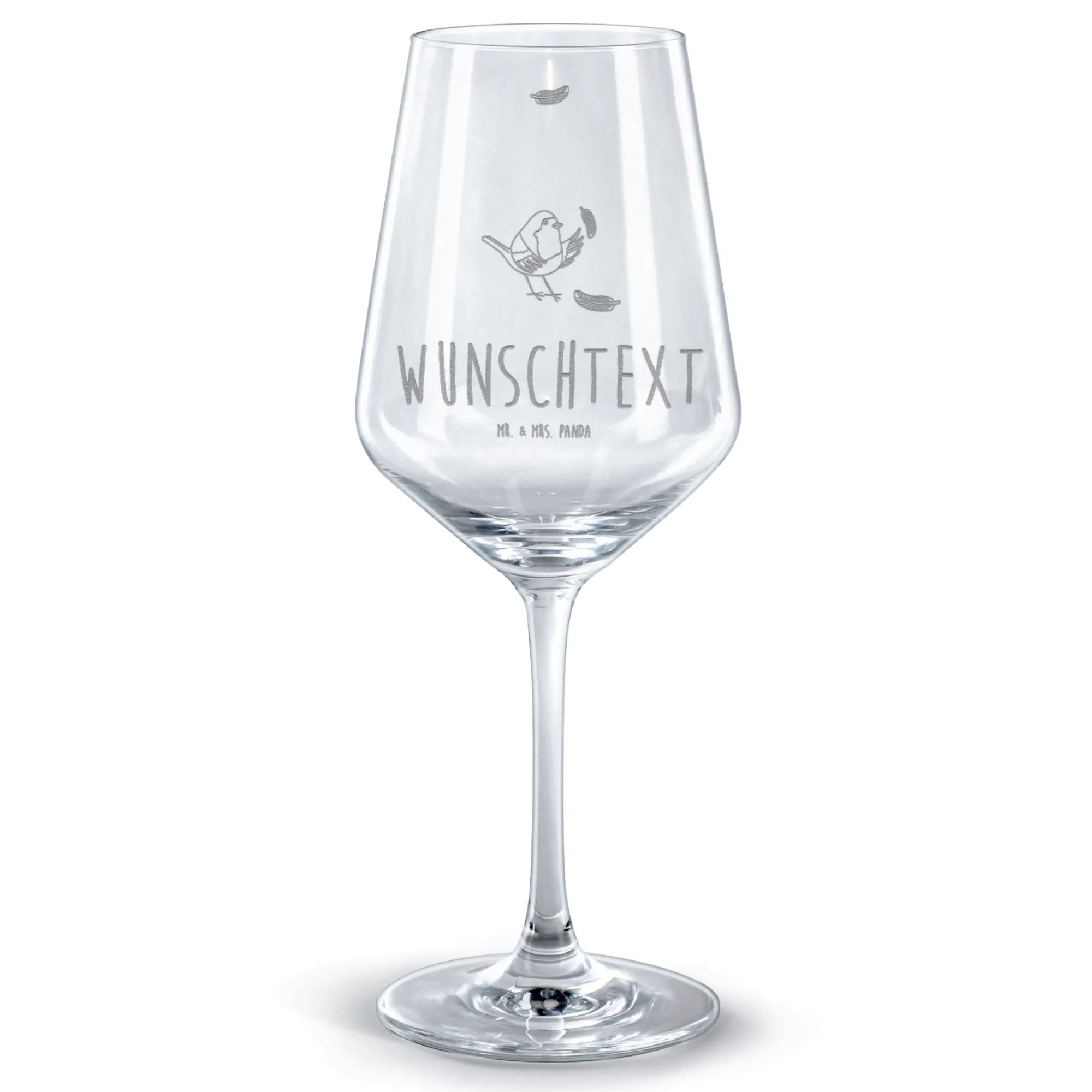 Personalisiertes Rotwein Glas Rotkehlchen Federn