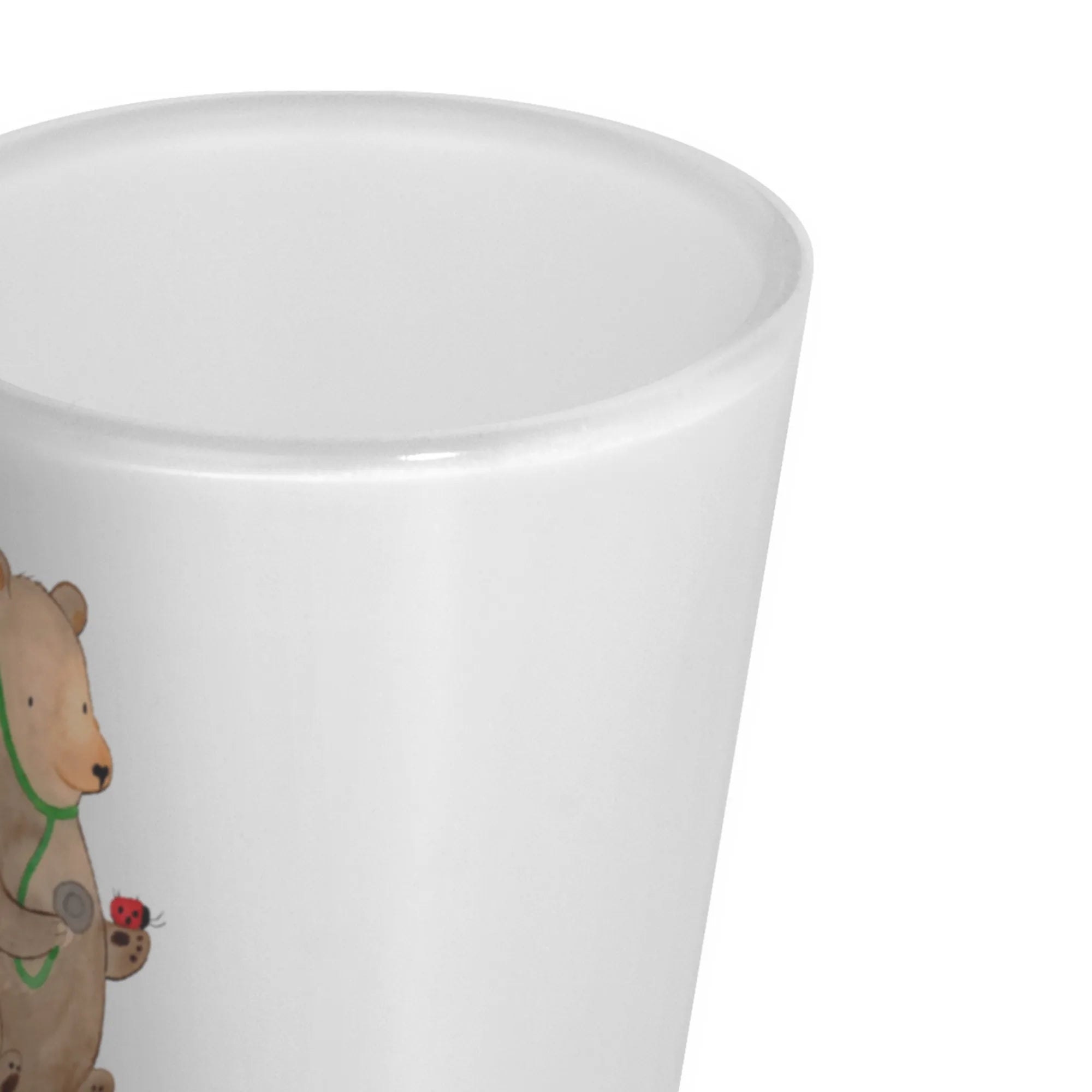 Dieses Schnapsglas wurde mit viel Liebe zum Detail von Mr. & Mrs. Panda entworfen und besticht durch sein zauberhaftes Motiv eines Bären, der als Arzt einen kleinen Marienkäfer behandelt. Mit einem Durchmesser von 50 mm und einer Höhe von 60 mm bietet es Platz für 40 ml Deines Lieblingsschnapses. Der brillante Vollfarb-Glasdruck sorgt dafür, dass das Motiv strahlt und die extreme Haltbarkeit des Motivs durch den Thermo-Transfer-Druck gewährleistet ist, dass es auch nach vielen Feiern leuchtend bleibt.