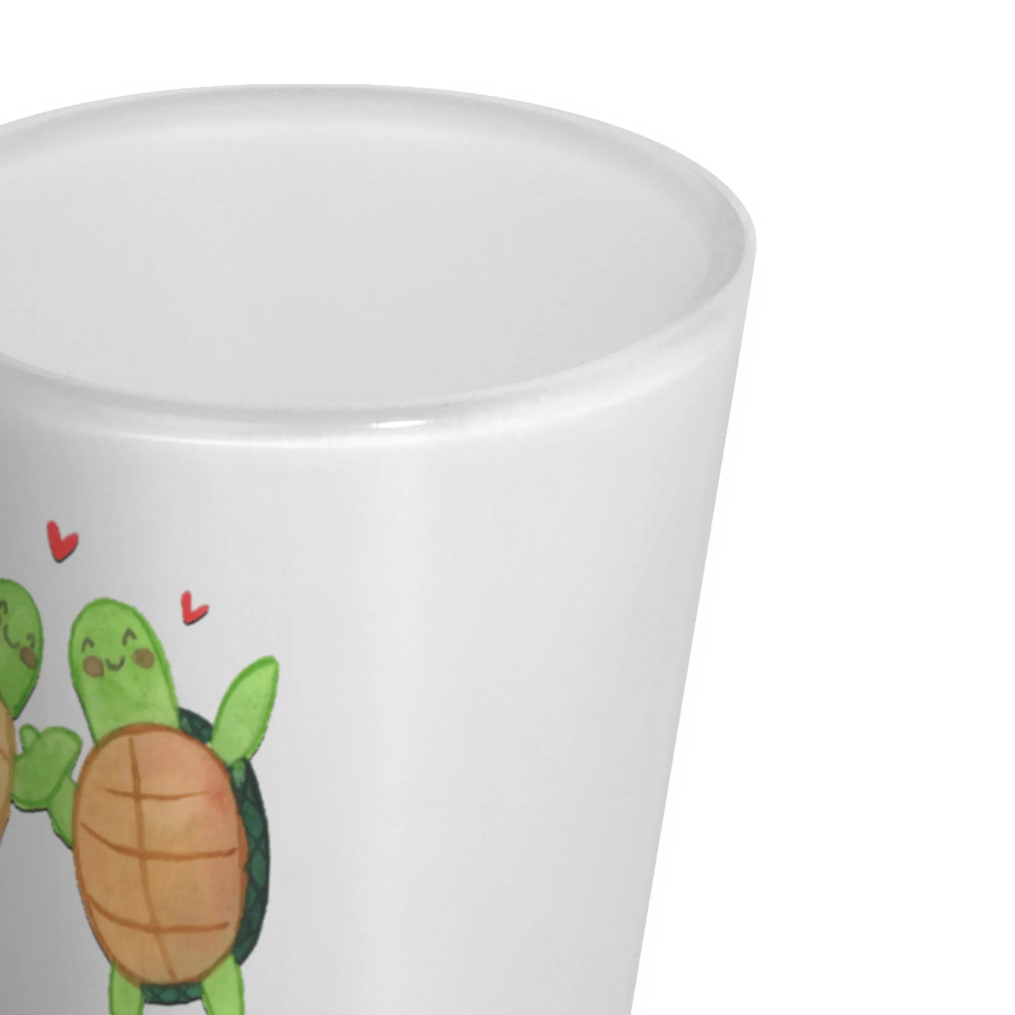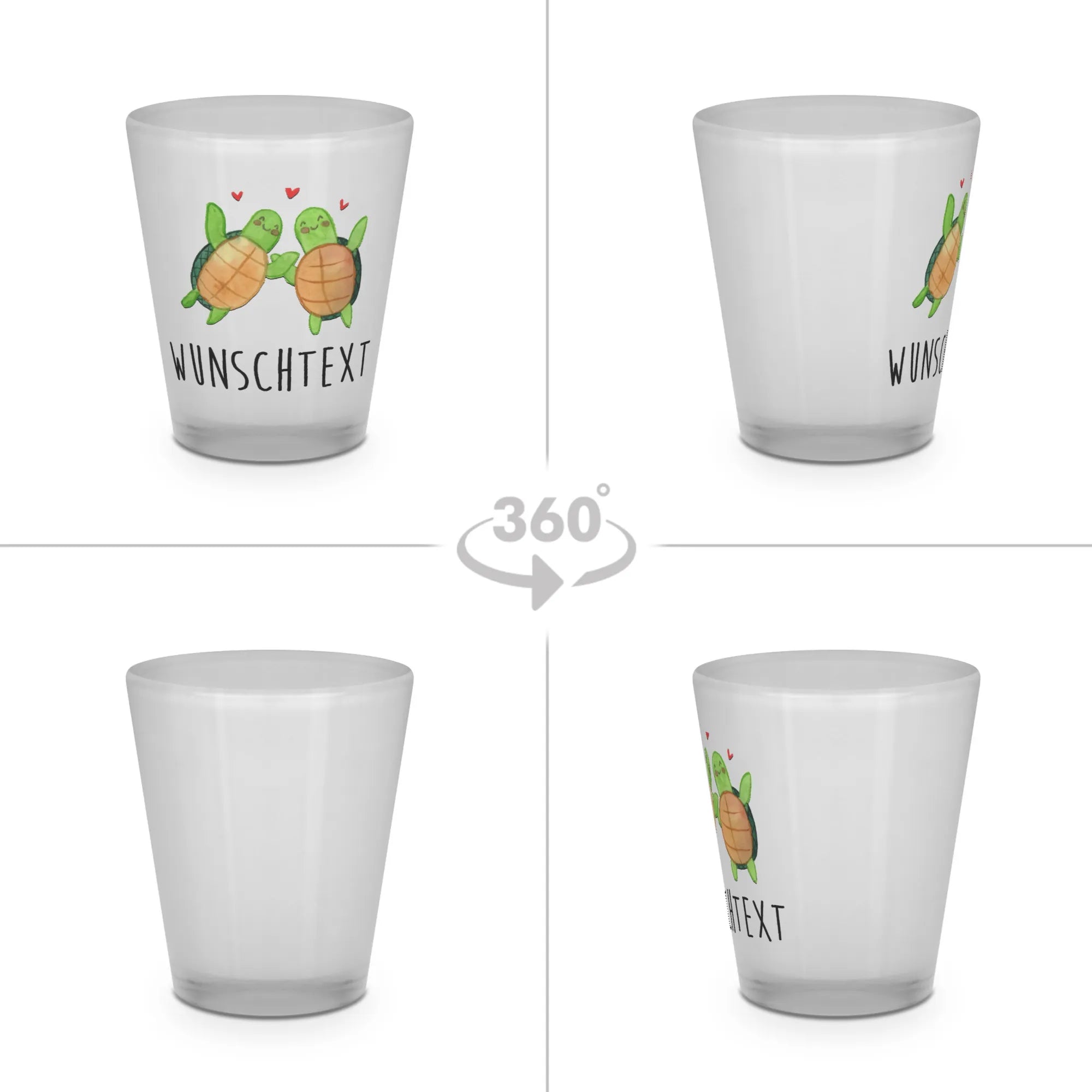 Die süßen Schildkröten, die sich zueinander neigen, und die kleinen roten Herzen, die zwischen ihnen schweben, strahlen pure Zuneigung aus. Dieses personalisierbare Schnapsglas ist nicht nur ein praktisches Utensil, sondern auch ein wunderschönes Andenken an besondere Momente. Überrasche deinen Partner oder deine Partnerin beim Jahrestag oder Hochzeitstag mit diesem individuellen Geschenk, das mit einem Namen oder einem persönlichen Text versehen werden kann.