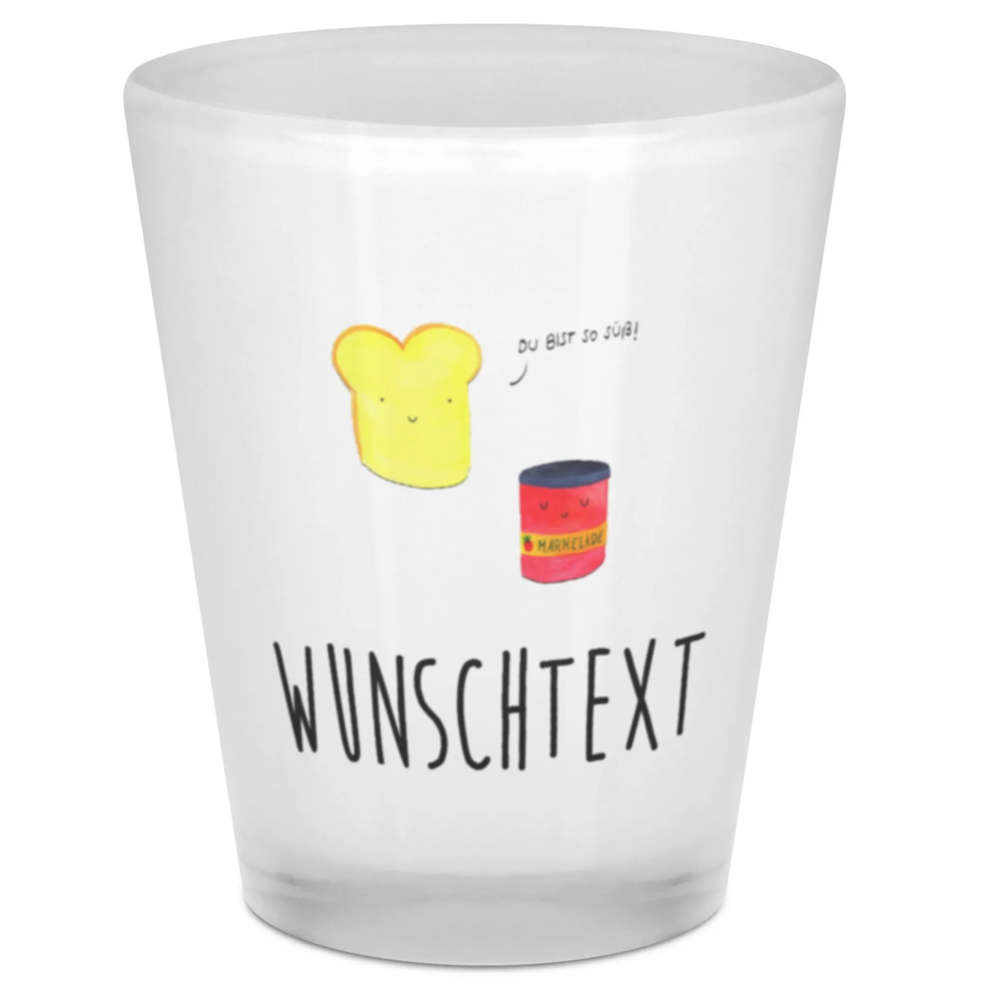 Das personalisierte Schnapsglas "Toast & Marmelade" von Mr. & Mrs. Panda ist die perfekte Wahl für all jene, die ein ganz besonderes Geschenk suchen. Dieses wunderschön verzierte Glas mit dem süßen Motiv von einem Toast und einer Marmelade, die ineinander verliebt sind, wird zum absoluten Hingucker auf jedem Tisch. Es strahlt Freude und gute Laune aus und ist somit ideal für feierliche Anlässe.