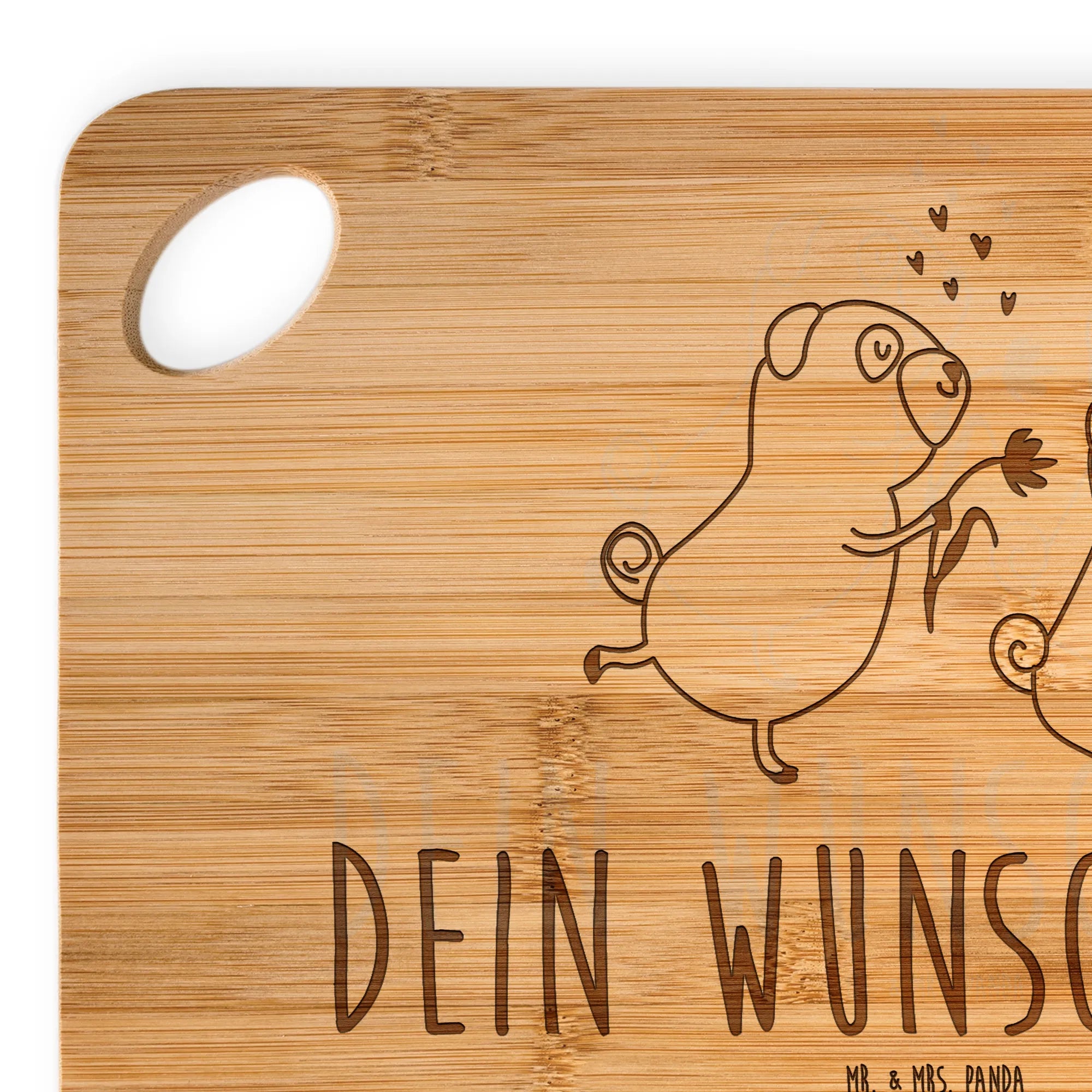 Das personalisierte Schneidebrett "Mops verliebt" aus der Hunde Kollektion von Mr. & Mrs. Panda ist mehr als nur ein Küchenutensil – es ist ein Erinnerungsstück, das die Liebe zu deinem pelzigen Freund auf eine ganz besondere Weise feiert.
