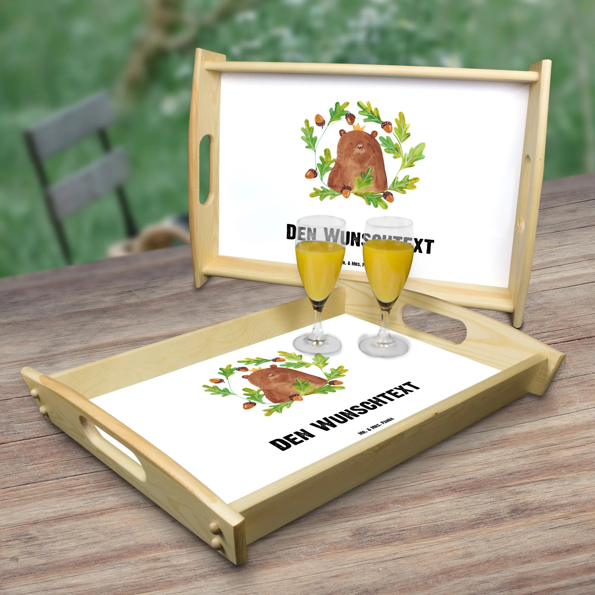 Das personalisierte Serviertablett Bär König von Mr. & Mrs. Panda ist das perfekte Geschenk für jeden Papa und für alle, die Bären lieben. Hergestellt aus hochwertigem lasiertem Echtholz, vereint es Funktionalität mit liebevollem Design.