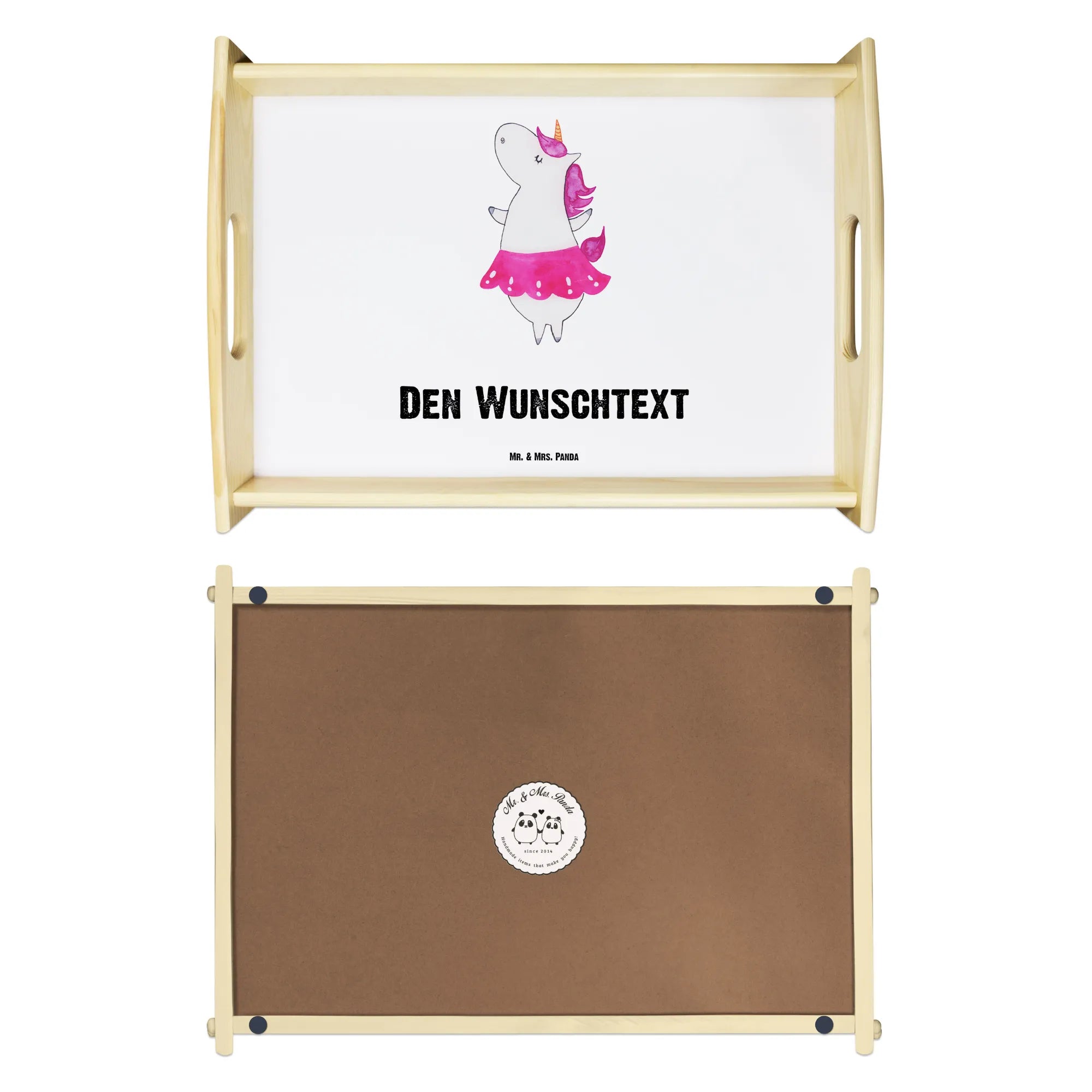 Das personalisierte Serviertablett "Einhorn Ballerina" von Mr. & Mrs. Panda ist das perfekte Geschenk für alle, die den Spaß am Tanzen lieben! Wenn du auf der Suche nach einem einzigartigen und liebevoll gestalteten Tablett bist, wirst du hier fündig. Mit dem bezaubernden Motiv eines Einhorns im Tütü, das voller Lebensfreude die Tanzfläche erobert, bringt dieses Tablett ein Stück Magie in jede Wohnung. Ideal für kleine Feiern, Geburtstagsüberraschungen oder einfach nur, um deinen Freunden zu zeigen, wie viel sie dir bedeuten! 🎉