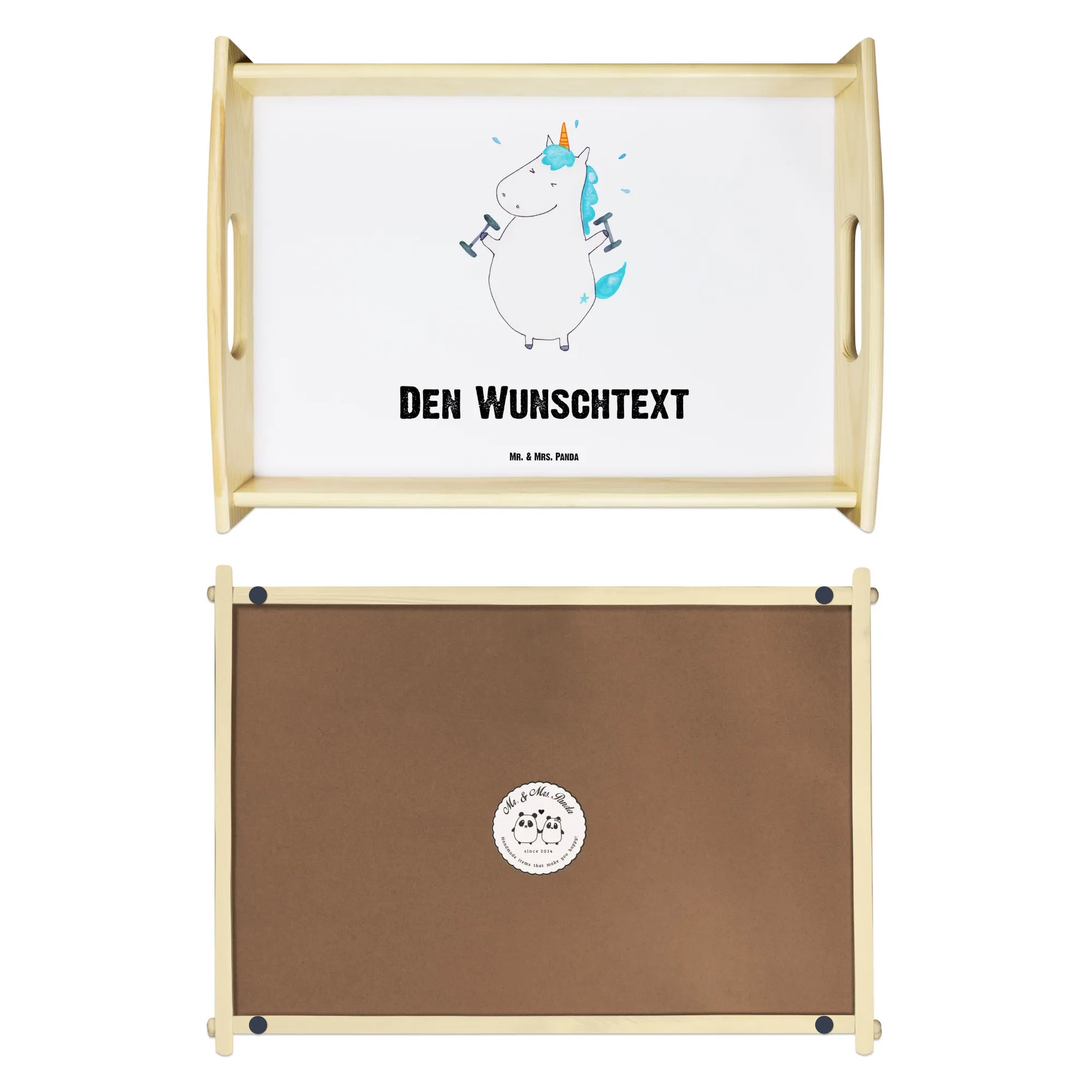 Personalisiertes Serviertablett Einhorn Fitness – Mr. & Mrs. Panda