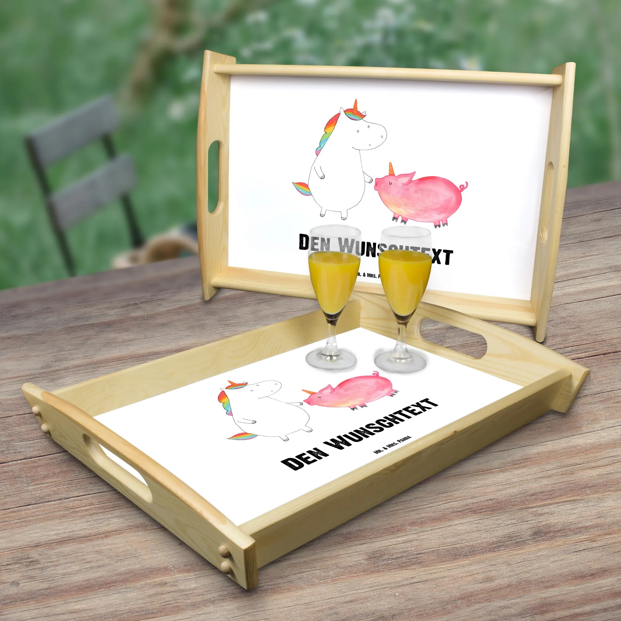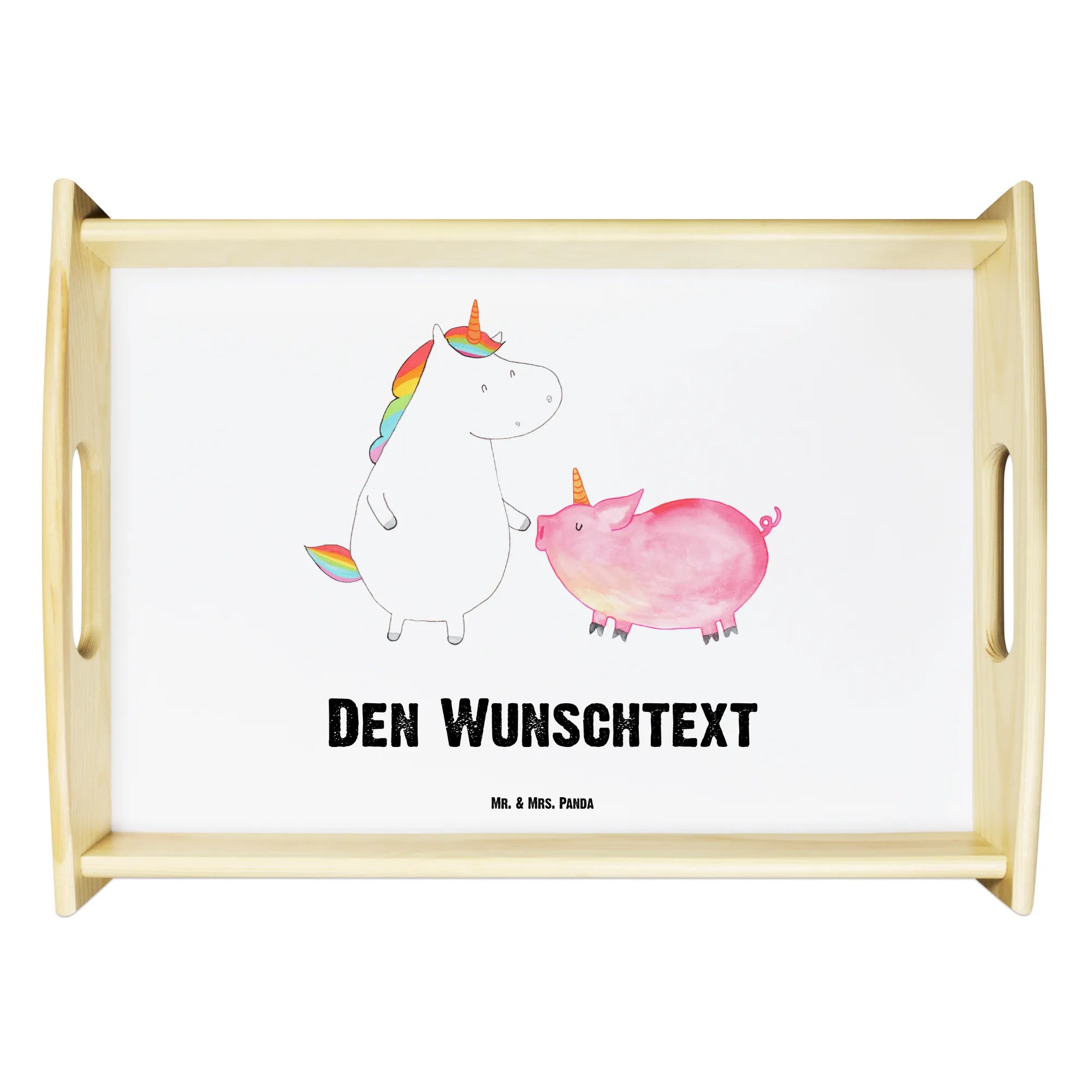 Personalisiertes Serviertablett Einhorn + Schweinhorn – Mr. & Mrs. Panda