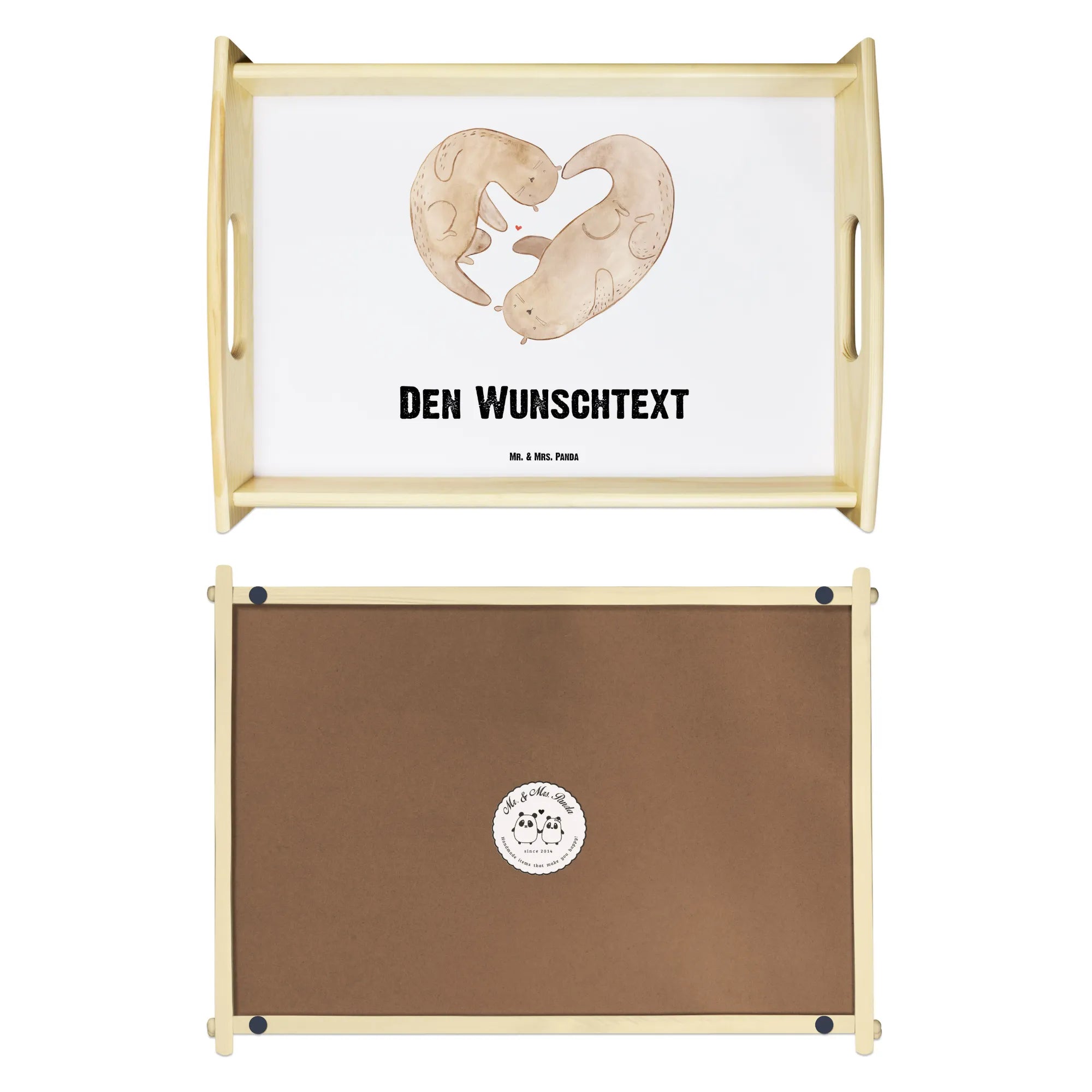 Verschenke Liebe, Lächeln und Gemütlichkeit mit diesem einzigartigen Tablett, das alles vereint, was das Herz begehrt. Hol dir jetzt dein personalisiertes Serviertablett mit dem Otter Herz Motiv und zeige deinen Liebsten, wie wichtig sie dir sind!
