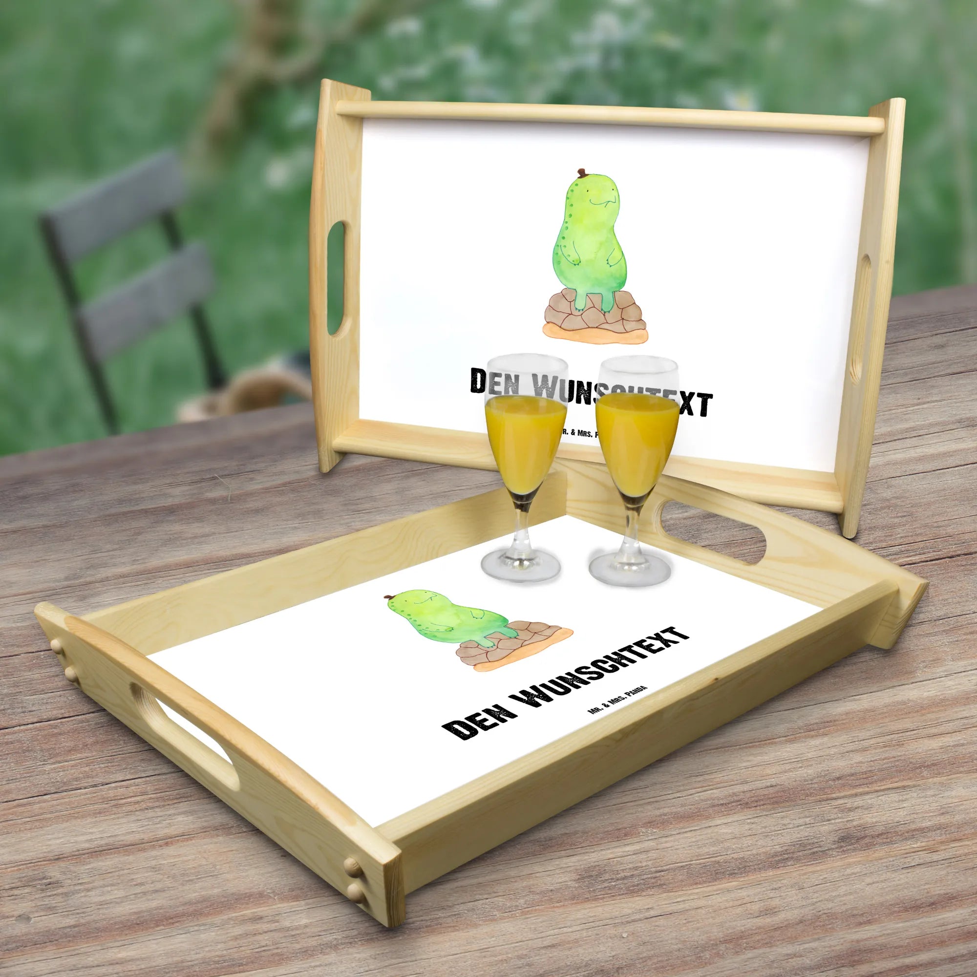 Entdecke unser wunderschönes personalisiertes Serviertablett von Mr. & Mrs. Panda, perfekt für fröhliche Frühstücksmomente im Bett oder auf dem Sofa! Mit einer Größe von 480 mm x 365 mm x 65 mm und einem Gewicht von 925 g, bietet es den perfekten Platz für dein Lieblingsessen oder Snacks. Das Tablett besteht aus lasiertem Echtholz und ist mit herrlichen Motiven und Sprüchen von Mr. & Mrs. Panda bedruckt. Du kannst es sogar mit deinem Wunschtext oder Wunschnamen personalisieren! Die seitlichen Griffmulden sorgen für eine mühelose Handhabung und die kratzfeste sowie robuste Oberfläche garantiert lange Freude an diesem hübschen Stück. Besonders praktisch sind die Anti-Rutsch Pads auf der Unterseite, die ein Abrutschen verhindern. Pflegeleicht kannst du es einfach mit einem feuchten Tuch und etwas Spülmittel abwischen - aber achte darauf, es nicht einzuweichen. Beachte bitte, dass die Herstellung aufgrund der aufwändigen Details etwas länger dauert.