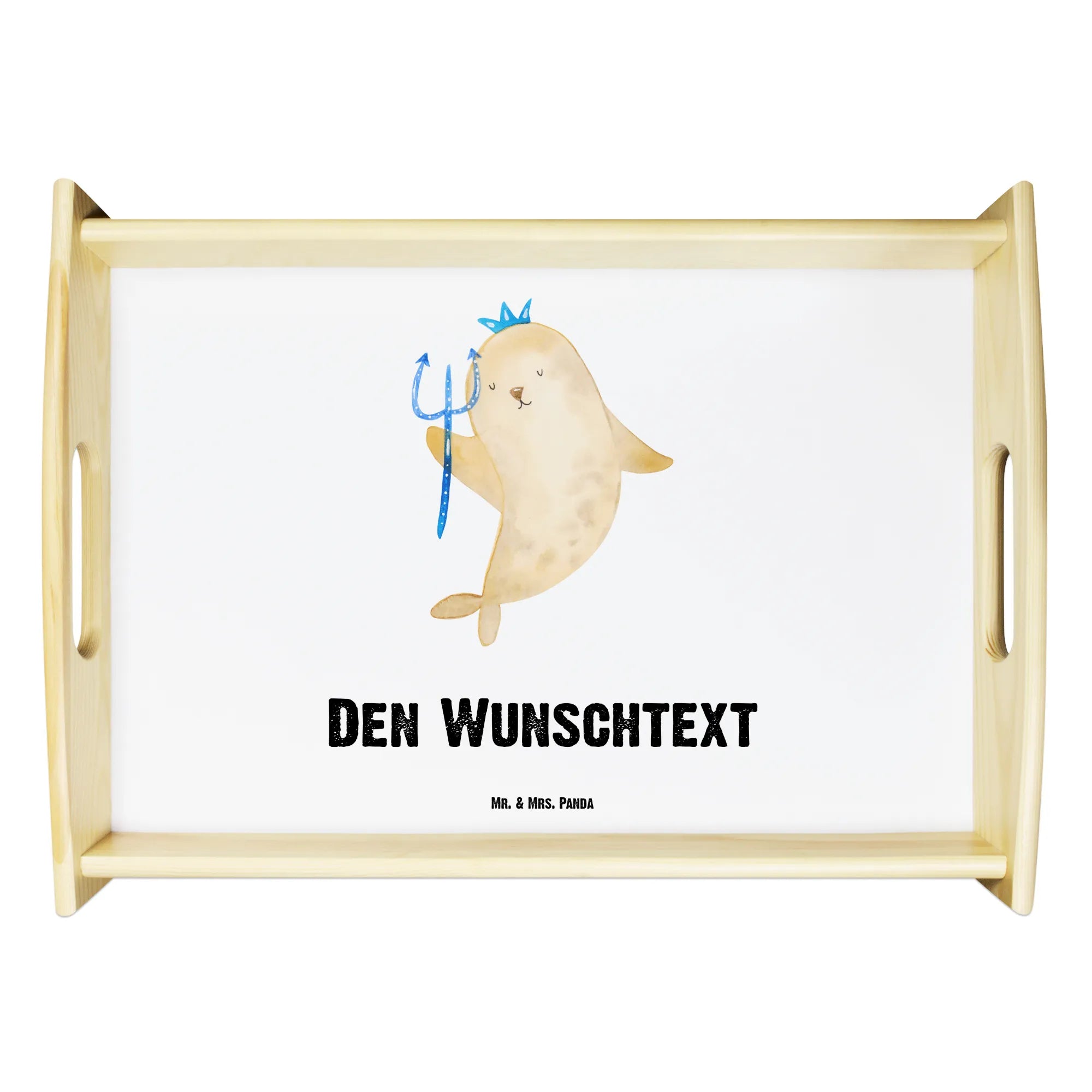 Besonders nett ist, dass das Tablett mit deinem Wunschtext oder Namen personalisiert werden kann. So erhält jeder das ganz persönliche Geschenk, das in Erinnerung bleibt. Das Motiv des Wassermanns mit seiner Robbe, die eine Krone trägt und mit einem Zepter prunkt, bringt den typischen Charakter eines Wassermanns zum Ausdruck: Spontanität und Großzügigkeit. Die Motto „Spontan und grandios wie ein Wassermann“ unterstreicht dies perfekt und macht das Tablett nicht nur zu einem nützlichen, sondern auch zu einem stilvollen Deko-Element.