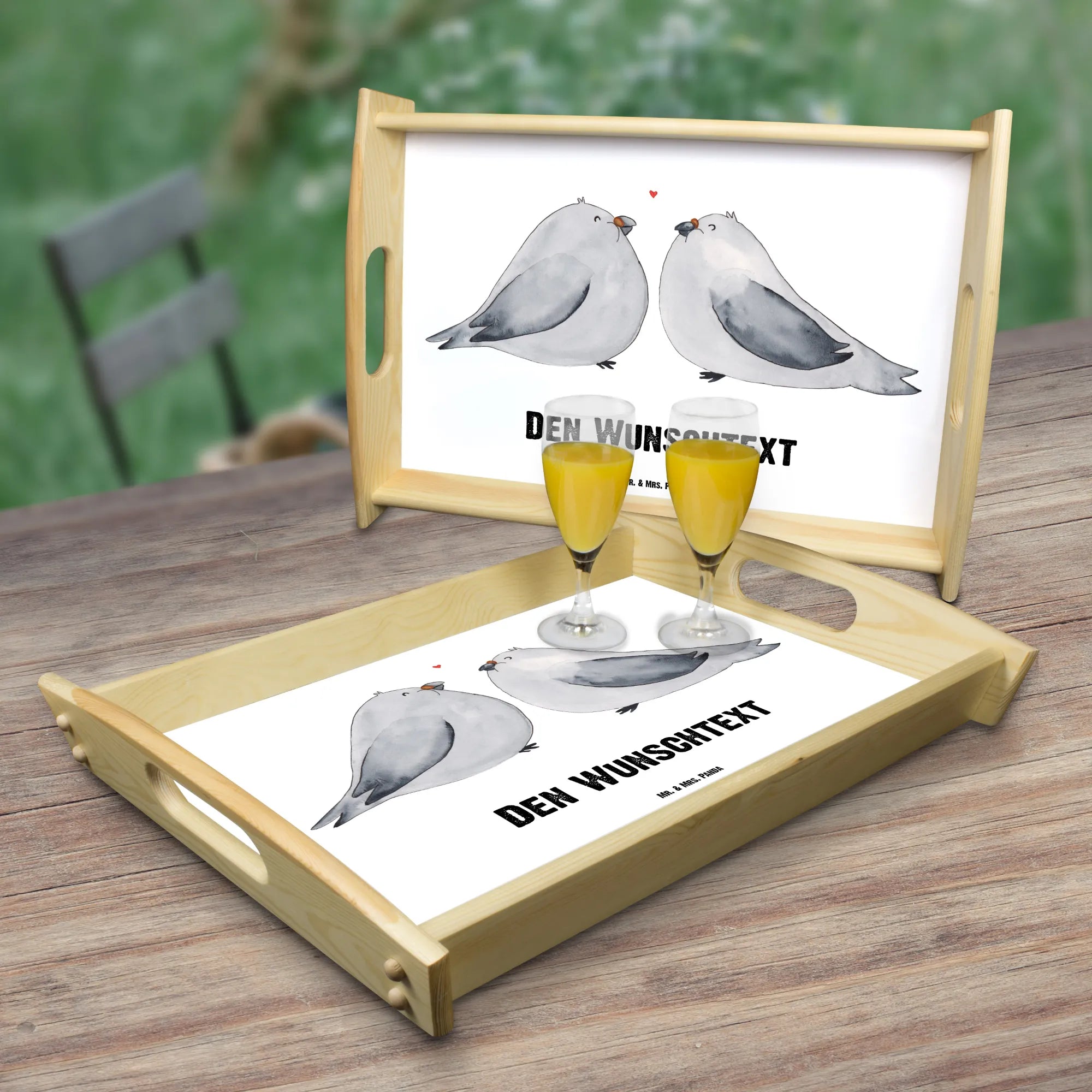 Schaffe unvergessliche Momente mit diesem personalisierten Holztablett, das nicht nur praktisch, sondern auch ein wunderschönes Dekorationsstück ist. Jeder Blick auf die liebevoll gestalteten Turteltauben wird das Herz höher schlagen lassen und die schönsten Erinnerungen wecken. Verschenke Liebe und Freude mit diesem einzigartigen Küchentablett aus der Liebe-Kollektion von Mr. & Mrs. Panda – das perfekte Geschenk für Verliebte!