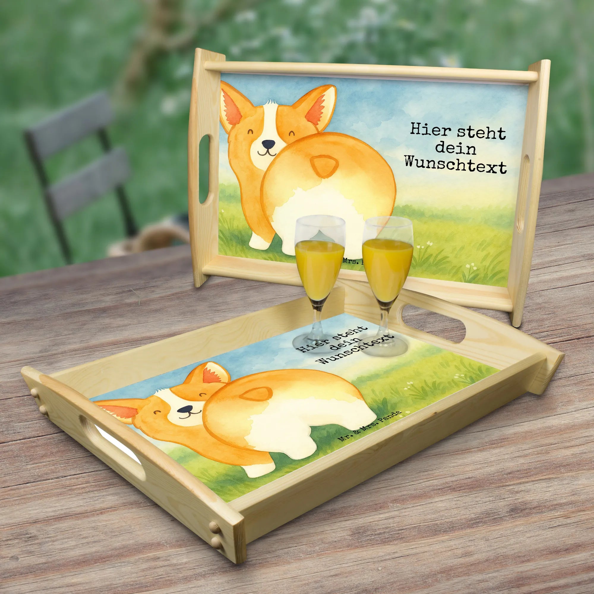 Gestalte dein Frühstück auf eine unvergessliche Art und Weise mit unserem personalisierten Serviertablett von Mr. & Mrs. Panda! Mit den Maßen 480 mm x 365 mm x 65 mm und einem Gewicht von 925 g, ist es der perfekte Begleiter für ein romantisches Frühstück im Bett oder einen entspannten Filmabend auf der Couch. Dieses hochwertige Tablett aus lasiertem Echtholz ist mit originellen Designs und Sprüchen versehen, die von den kreativen Köpfen von Mr. & Mrs. Panda stammen. Du hast die Möglichkeit, dein Tablett mit deinem Wunschtext oder Wunschnamen zu personalisieren, um es noch spezieller zu machen! Dank der praktischen Griffmulden lässt sich das Tablett bestens handhaben, und die kratzfeste Oberfläche sorgt dafür, dass es auch nach häufigem Gebrauch gut aussieht. Die Anti-Rutsch Pads auf der Unterseite garantieren ein sicheres Tragen. Pflege dein Tablett mit leichtem Abwischen von Hand und vermeide das Einweichen. Beachte bitte, dass die Anfertigung aufgrund der individuellen Gestaltung etwas mehr Zeit in Anspruch nehmen kann.