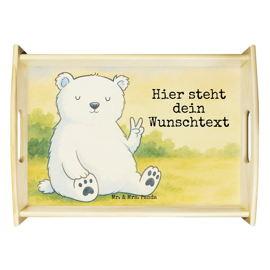 Mache dein Frühstück oder deinen Snack zu einem Highlight mit dem personalisierten Serviertablett von Mr. & Mrs. Panda! Es hat die Maße von 480 mm x 365 mm x 65 mm und wiegt 925 g – perfekt, um alles sicher und stilvoll zu transportieren. Hergestellt aus hochwertigem lasiertem Echtholz, strahlt es Wärme und Gemütlichkeit aus. Die individuelle Lasur wird dazu genutzt, um deinen persönlichen Text oder Namen zu verewigen – so wird jedes Tablett einzigartig! Das Design mit liebevollen Motiven und Sprüchen gibt dem Tablett eine fröhliche Note, während die seitlichen Griffmulden das Tragen einfacher machen. Zudem sorgen die Anti-Rutsch Pads auf der Unterseite für einen sicheren Halt, egal ob im Bett oder auf dem Tisch. Die Oberfläche ist kratzfest und leicht zu reinigen – einfach mit einem feuchten Tuch abwischbar. Bitte nicht einweichen und beachte, dass die Anfertigung eine gewisse Zeit in Anspruch nimmt, da jedes Stück mit viel Liebe gefertigt wird.