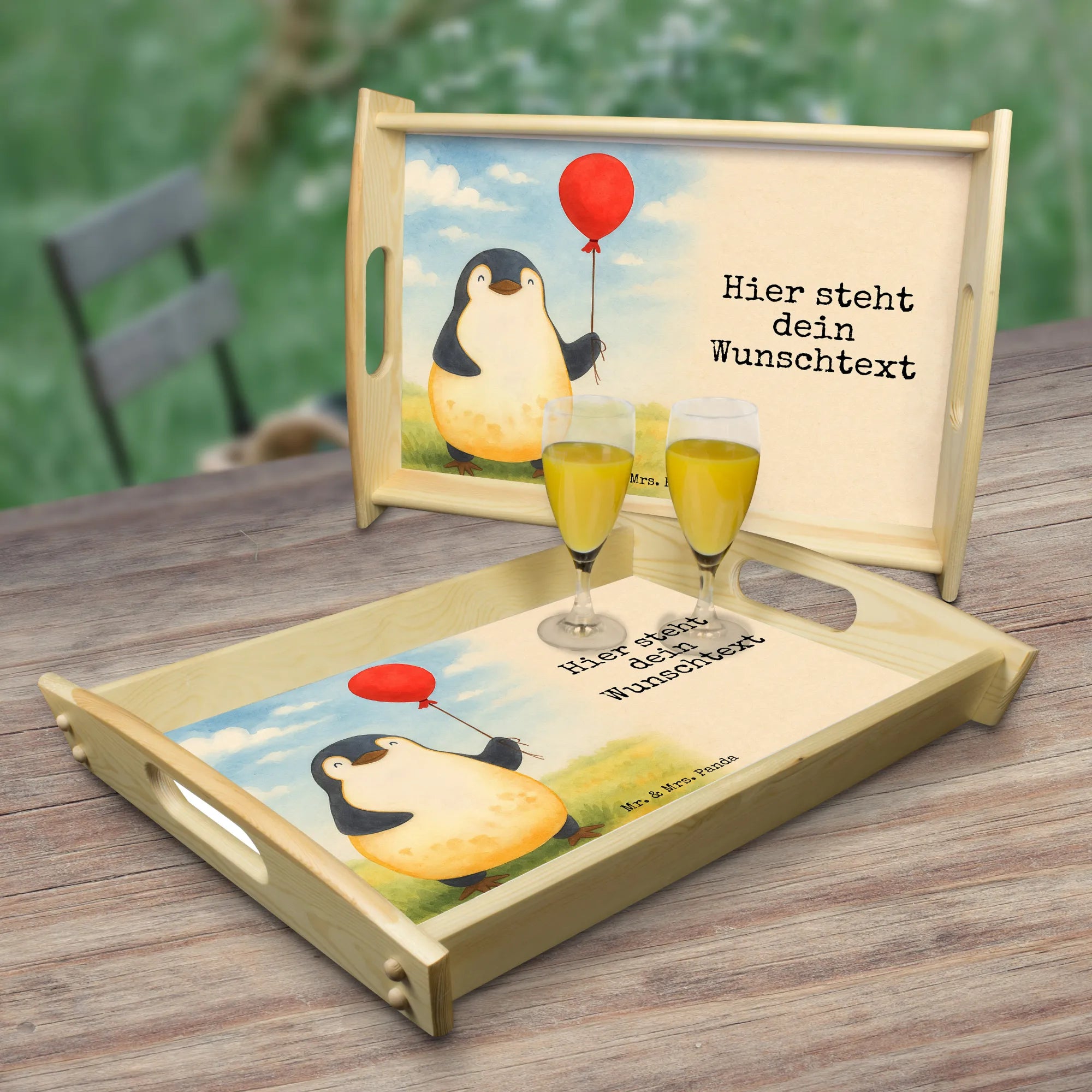 Personalisiertes Serviertablett Pinguin Luftballon Design