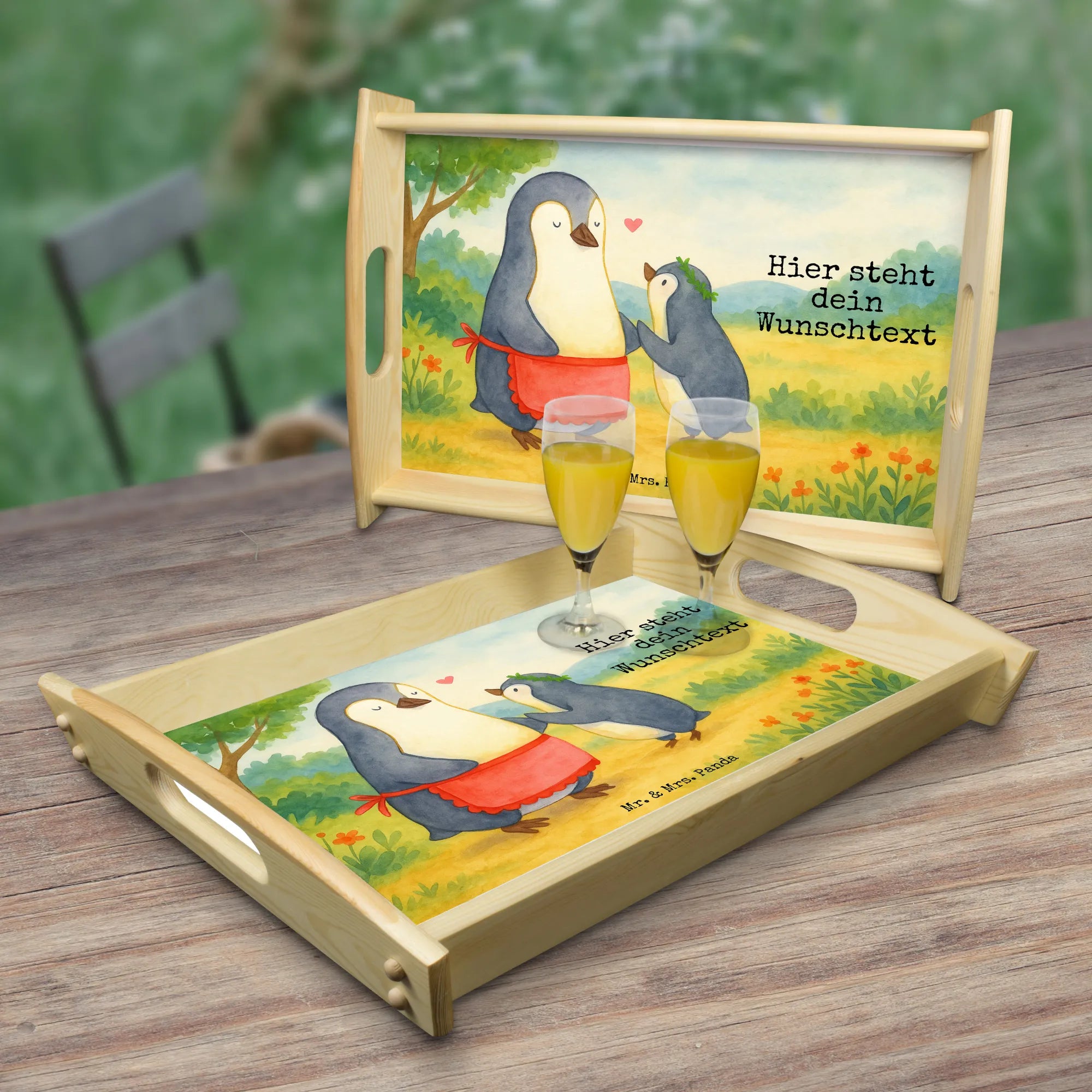 Personalisiertes Serviertablett Pinguin mit Kind Design
