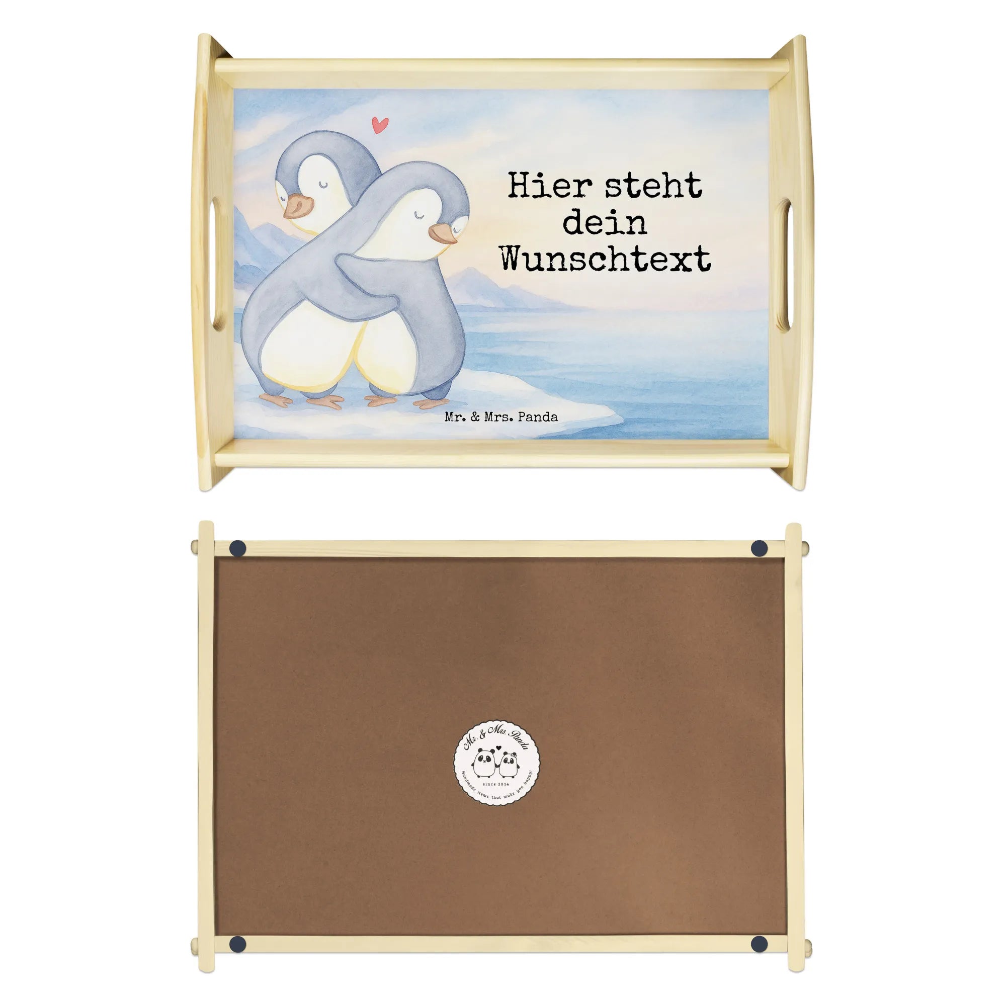 Personalisiertes Serviertablett Pinguine Kuscheln Design
