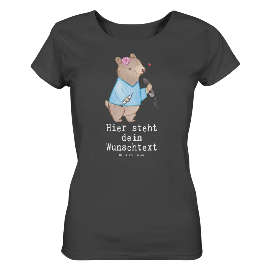 Diese Kreation ist Teil der einzigartigen Berufe-Kollektion von Mr. & Mrs. Panda, die kreative und liebevolle Geschenkideen für alle Berufsgruppen vereint. Jedes Motiv wurde mit viel Liebe und Fantasie von Mrs. Panda handgezeichnet und auf eine Vielzahl von Produkten gedruckt. Du kannst dir sicher sein, dass du mit diesem Geschenk die richtige Wahl triffst. Das personalisierte Shirt Damen ist nicht nur praktisch, sondern auch ein wunderbares Stück, um den eigenen Stil zu unterstreichen und gleichzeitig eine Botschaft der Wertschätzung zu transportieren.