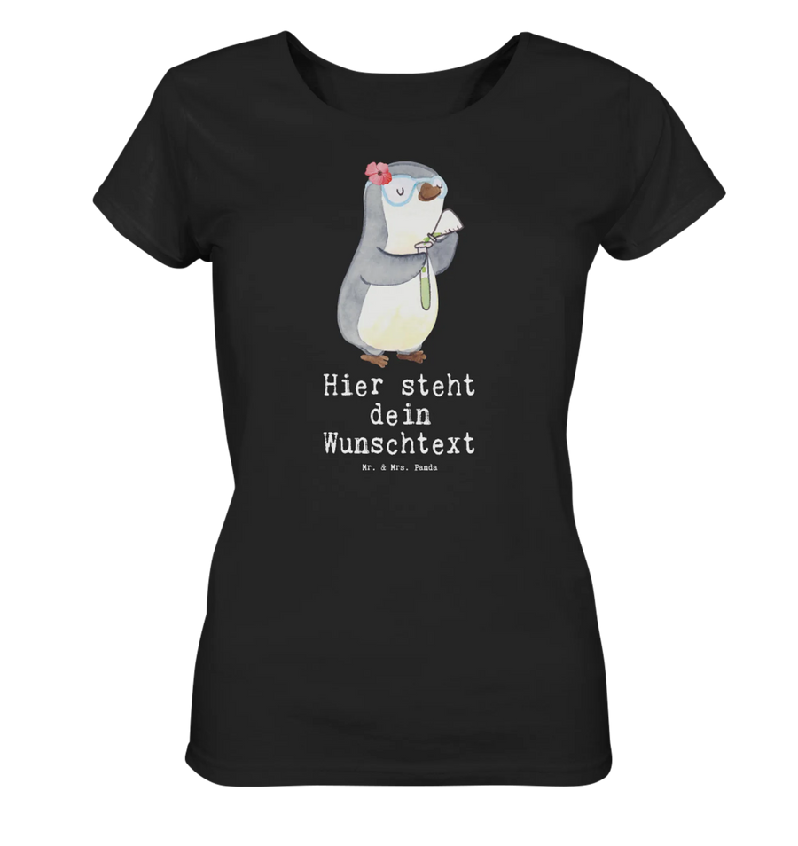 Das Personalisiertes Shirt Damen "Chemielaborantin mit Herz" aus der liebevollen Kollektion "Berufe" ist das perfekte Geschenk für alle Chemikerinnen, Chemielaborantinnen und Naturwissenschaftlerinnen. Mit einem niedlichen Pinguin, der ein Reagenzglas in der Hand hält, begeistert dieses Shirt und bringt die Leidenschaft für die Wissenschaft kreativ zum Ausdruck.