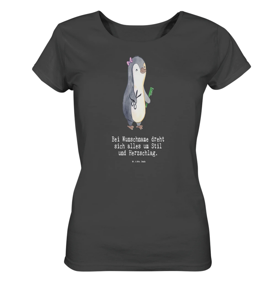 Entdecke das liebevoll gestaltete Personalisiertes Shirt Damen mit dem süßen Motiv "Hairstylistin mit Herz" aus der Kollektion 'Berufe' von Mr. & Mrs. Panda! Dieses T-Shirt ist das perfekte Geschenk für alle Haarprofis, die ihre Leidenschaft für das Friseurhandwerk mit Stolz tragen möchten.