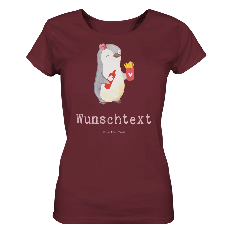 Es wird mit Sicherheit der Hit bei jeder Snackliebhaberin und jedem Pommes-Fan, und wer weiß, vielleicht wird der Pinguin auf dem Shirt zu ihrem neuen Lieblingsbegleiter. Hol dir jetzt das personalisierte Shirt und setze ein Zeichen für deine Imbissbesitzerin!